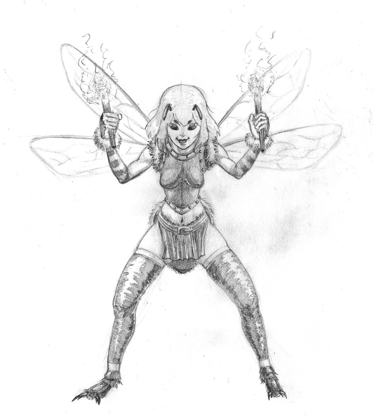 Alpha 15 of the 1.18.2 version of Grimoire of Gaia released with a few odd bugs. Honey Bees could shoot fireballs and caused rampant fires in some players' worlds. I found this very amusing and thus drew the Honey Bee as a mad arsonist.