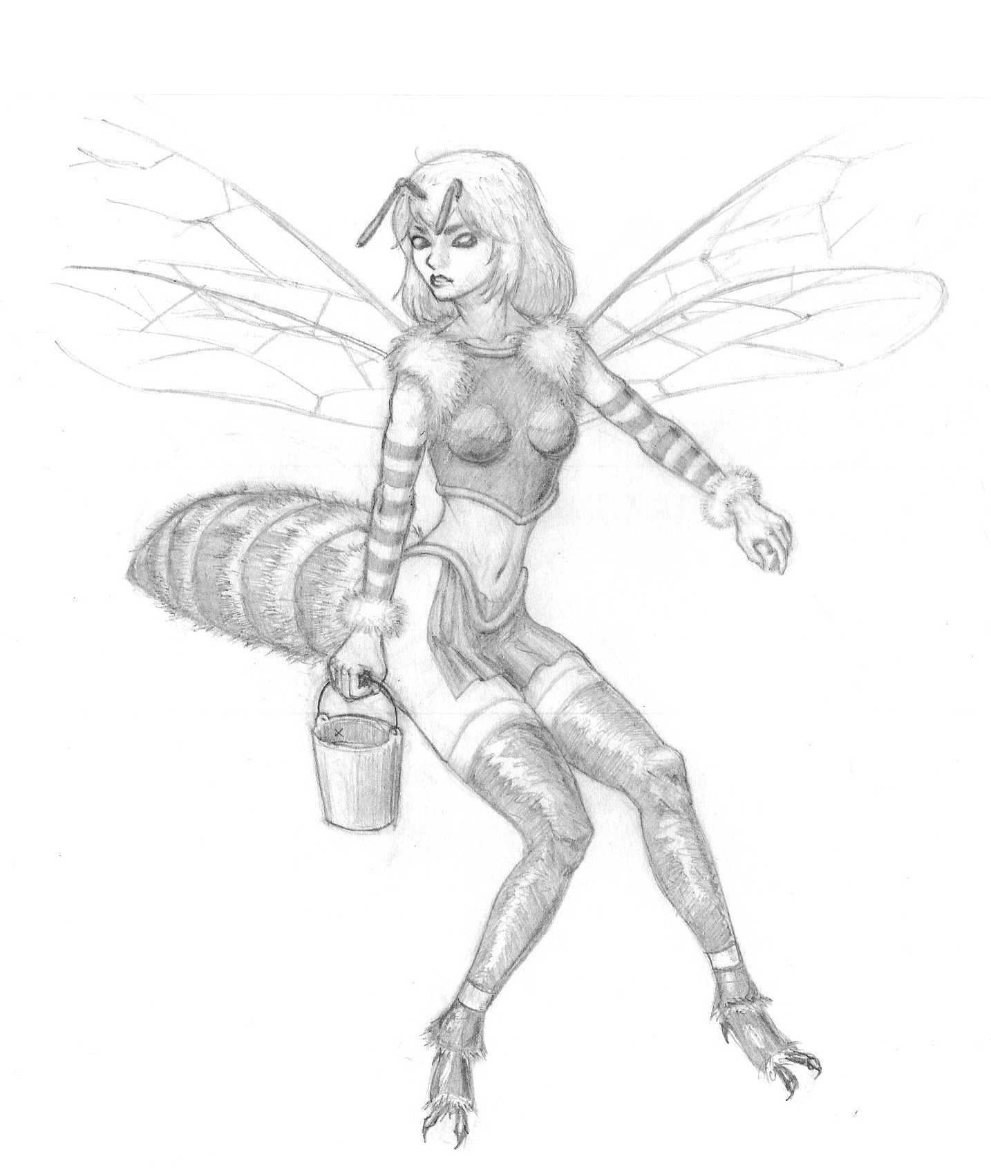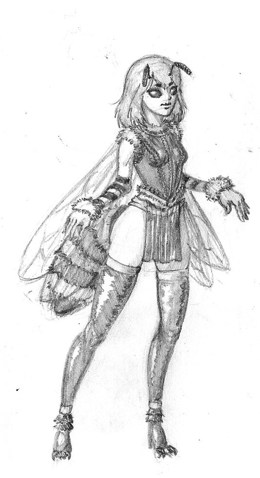 Fanart of the Honey Bee mob from the Minecraft mod Grimoire of Gaia created by Silentine. I like her design. My grasp of anatomy at this time was still a lot poorer than a year later.