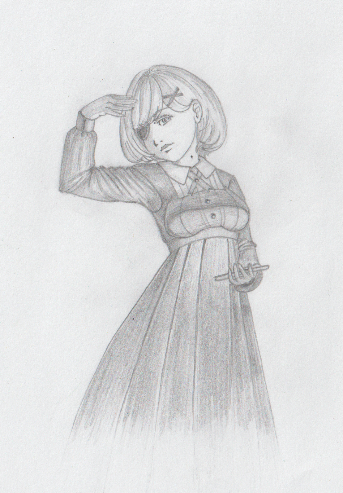 Miss Nightingale used to wear a fake eyepatch at school during her (ongoing?!) chuuni phase. She had to undergo surgery on her eyelid recently and was prescribed a medical eyepatch, so I drew this as a get-well-soon gesture.