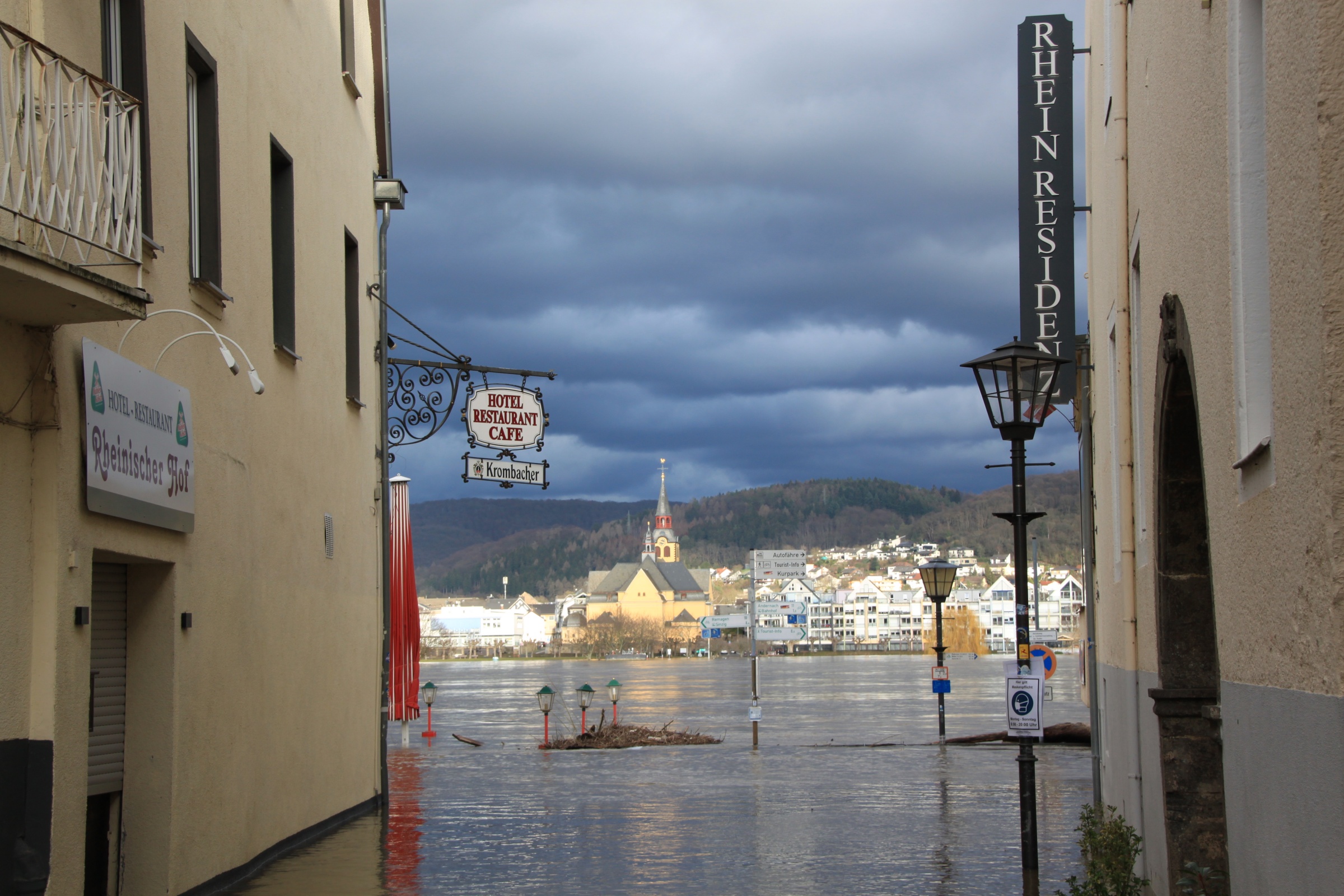 The annual flood was relatively high this year and inundated the whole of Bad Breisig's promenade.