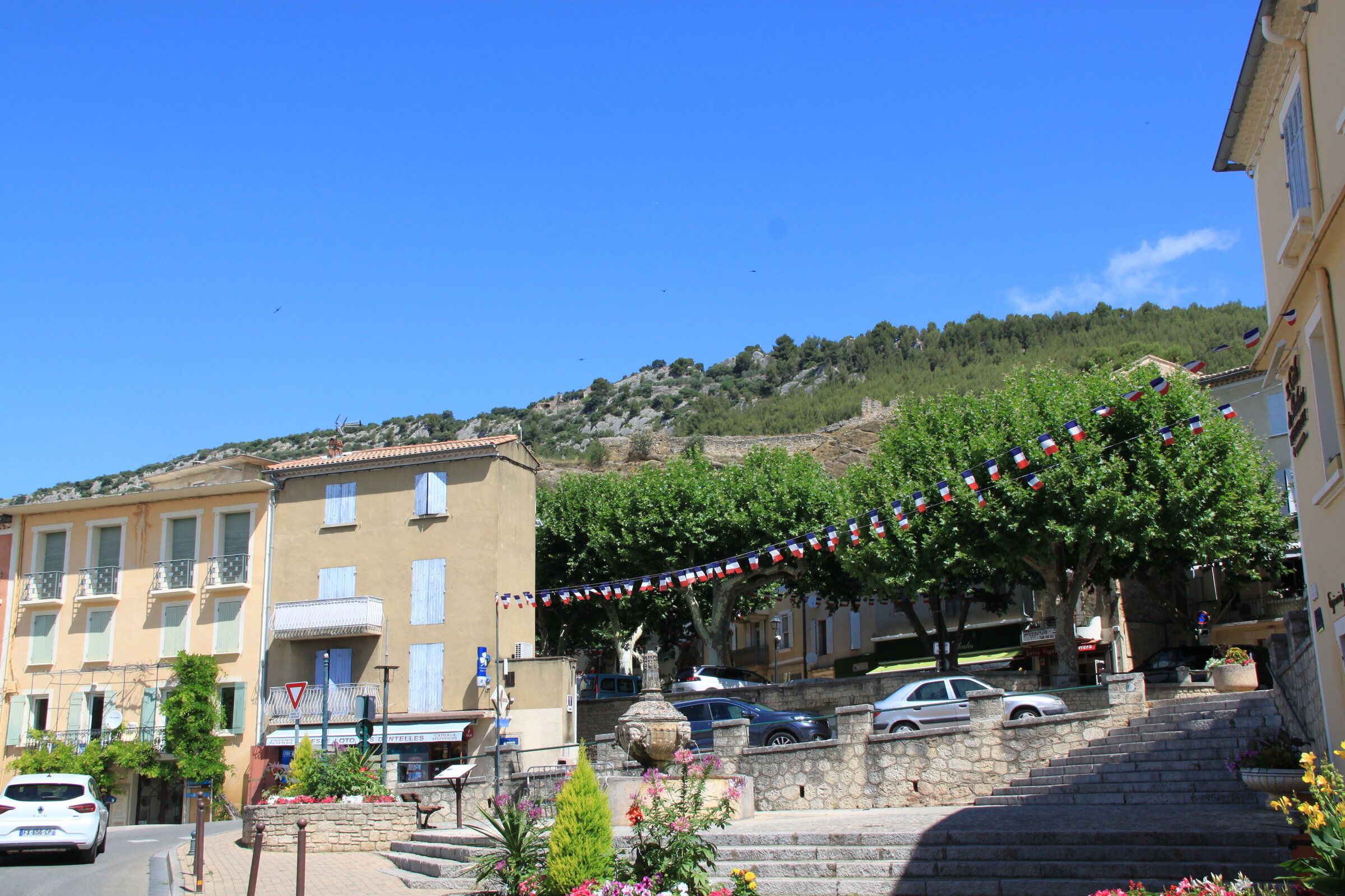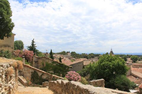 The narrow alleys of the old town wind and criss-cross up the slope of a foothill crowned by the ruins of a mediæval castle; behind it rises the narrow Courens plateau with its chapel.