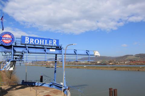 The biggest business in the town is Brohler mineral water plant. It has its own dock; the harbour is shared with a yachting club.