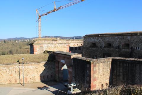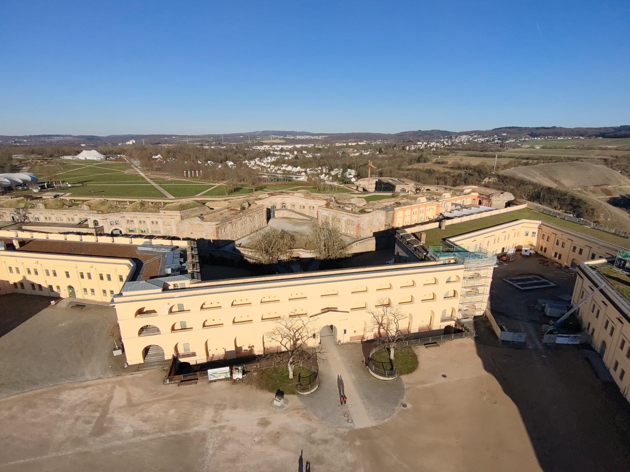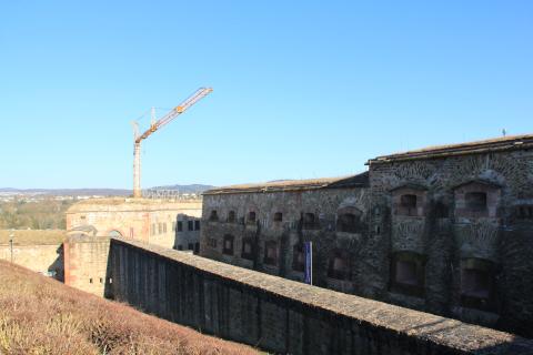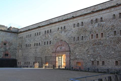 Rebuilt in its current form by the Prussian administration after the Napoleonic wars as a bulkwark against the French, the fortress never saw any real use in war, but it continues to serve well in peace.