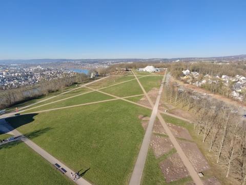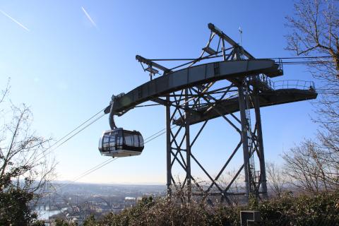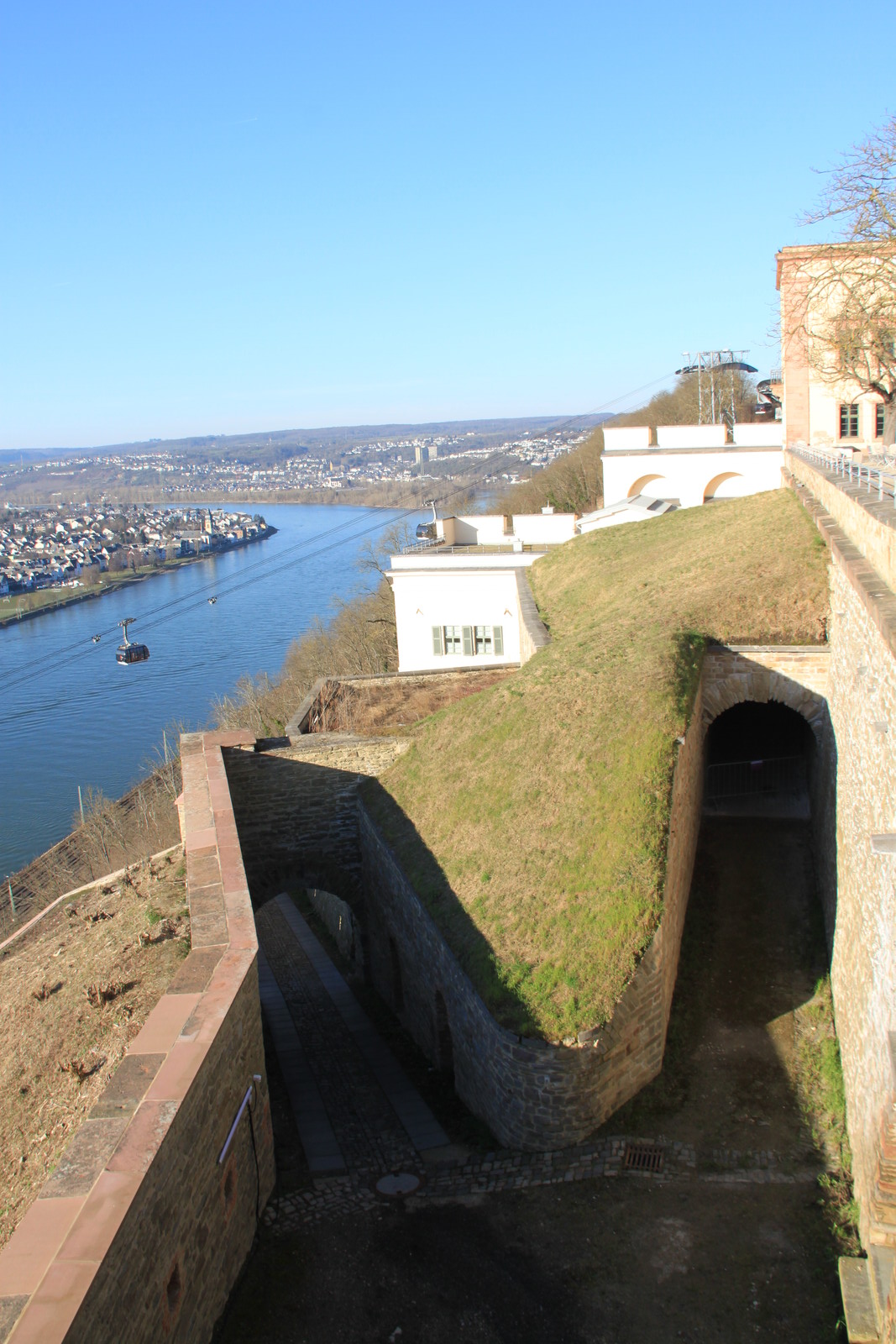 The killing fields before the fortress's walls, whose bastions cover any possible angle of approach, is now a large, open park. Cable cars carry people down and across the river into Koblenz.