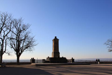 Ehrenbreitstein Fortress towers over the confluence of the rivers Rhine and Moselle across from the city of Koblenz, and guards the German lands against the French.