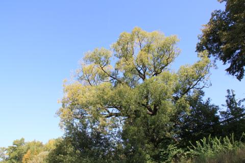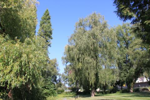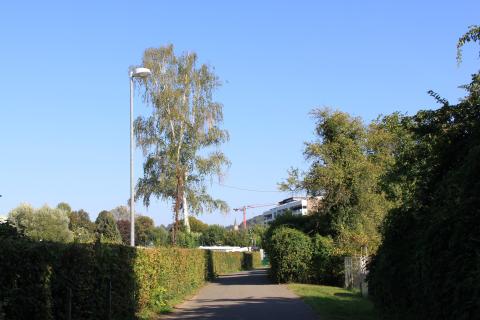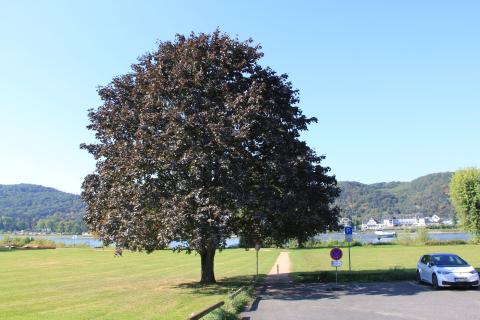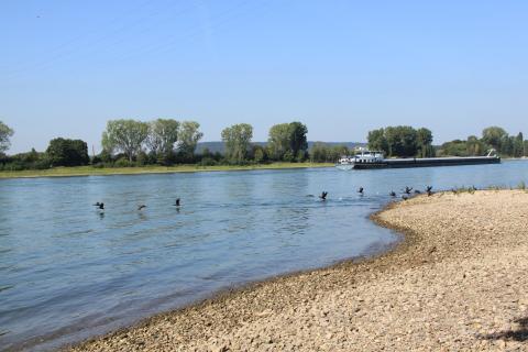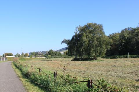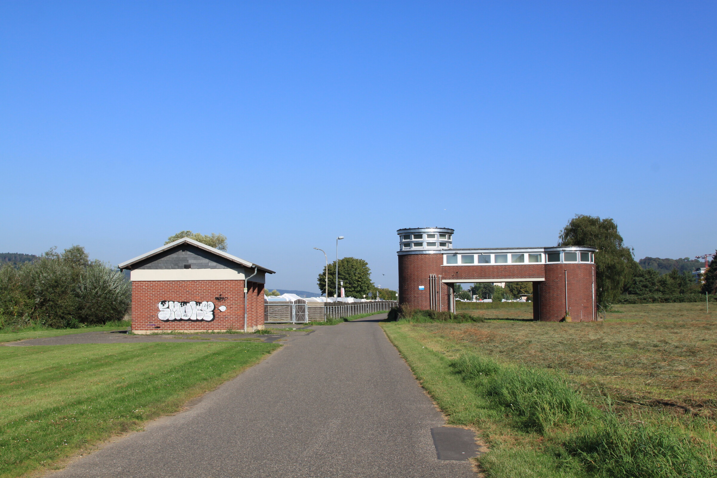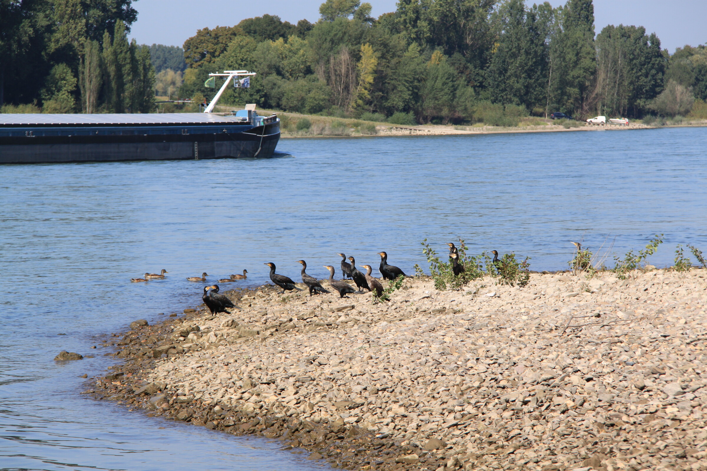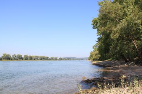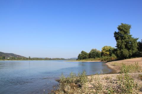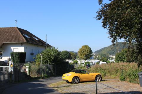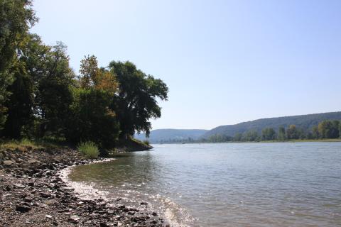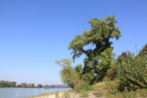 Between the ferry and the city is an expansive campsite. The city also sports a large factory. From the left side of the Rhine, the white steam from its gleaming, towering chimneys can seen from far away, but from here it's barely visible.