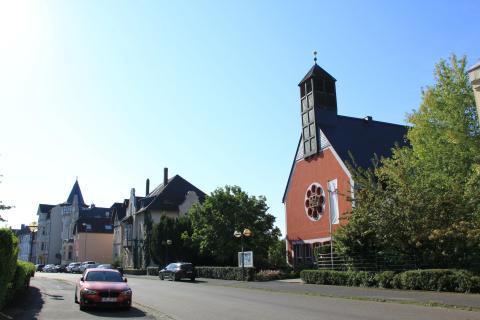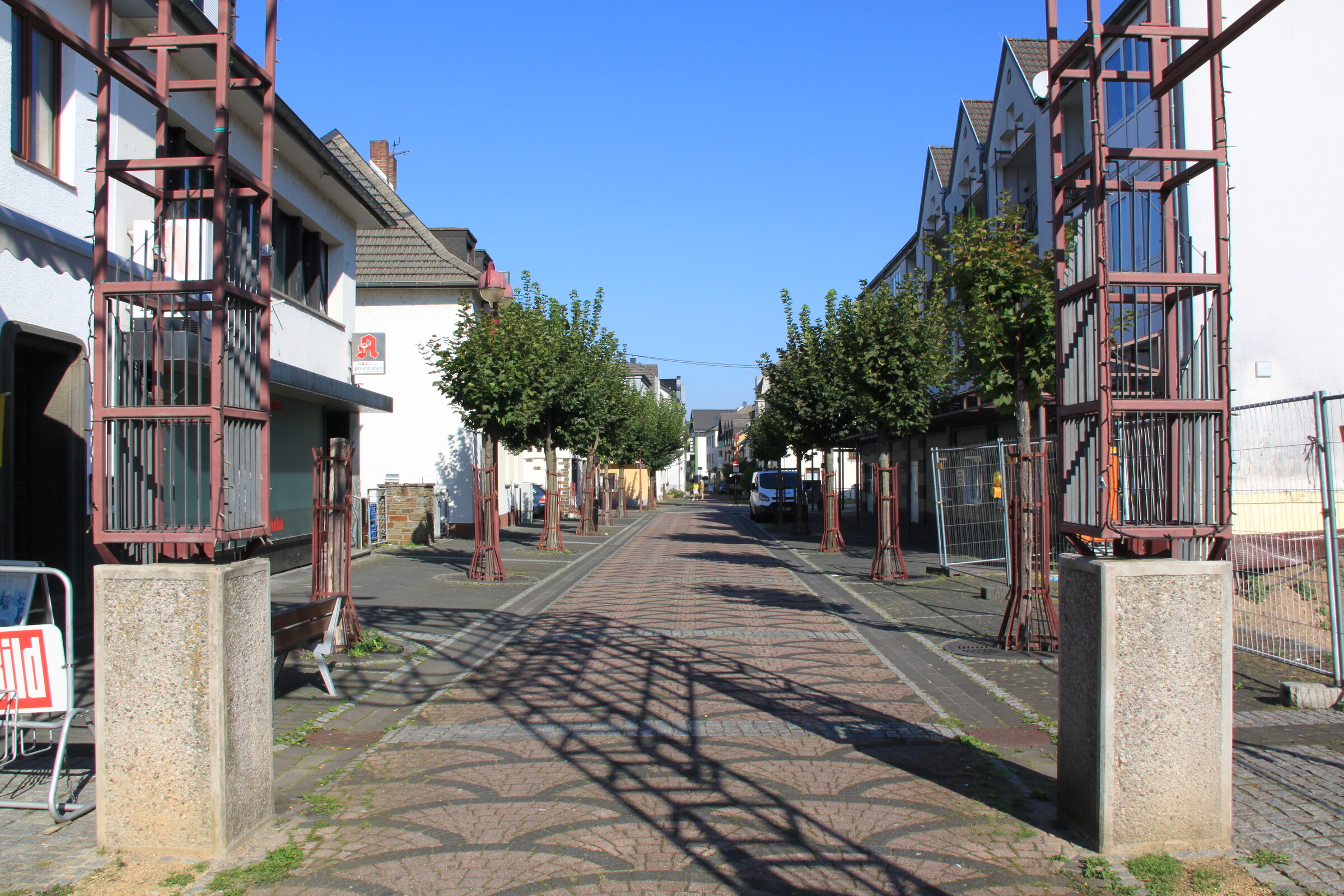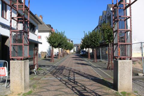 The main road into town is lined with typical 19th century townhouses, and a Protestant church. The pedestrian zone, and what was probably once the old town, is marked with a kind of steel frame gate.