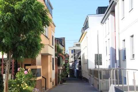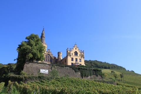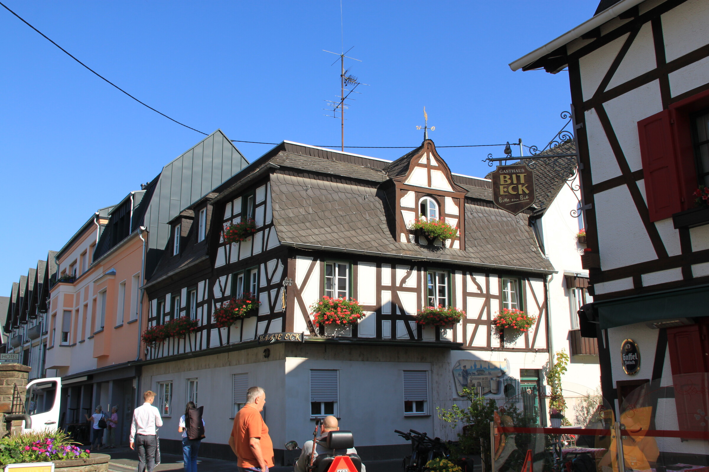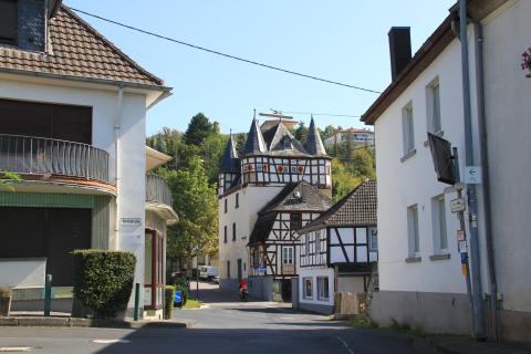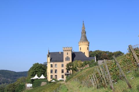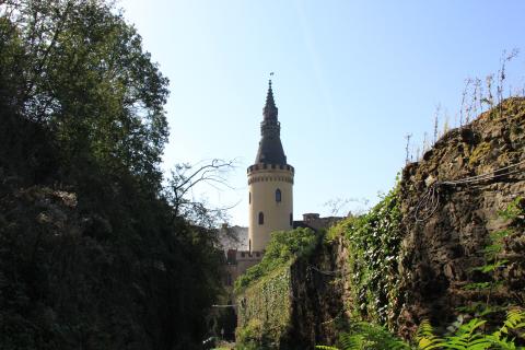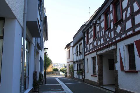 A number of underpasses under the railroad (and later again under a highway) lead from the old town towards the mountains and vinyards. There stands Arenfels Palace amid the grapes, with a good view of the town and landscape.
