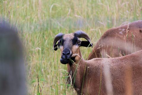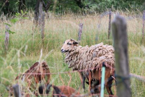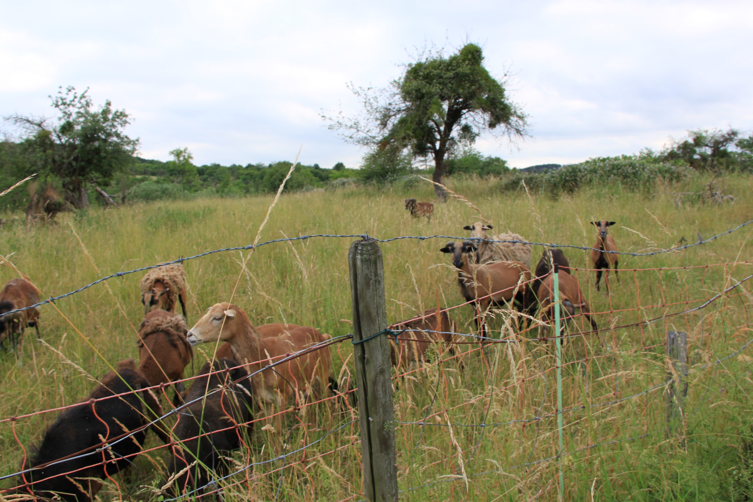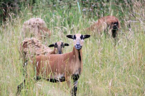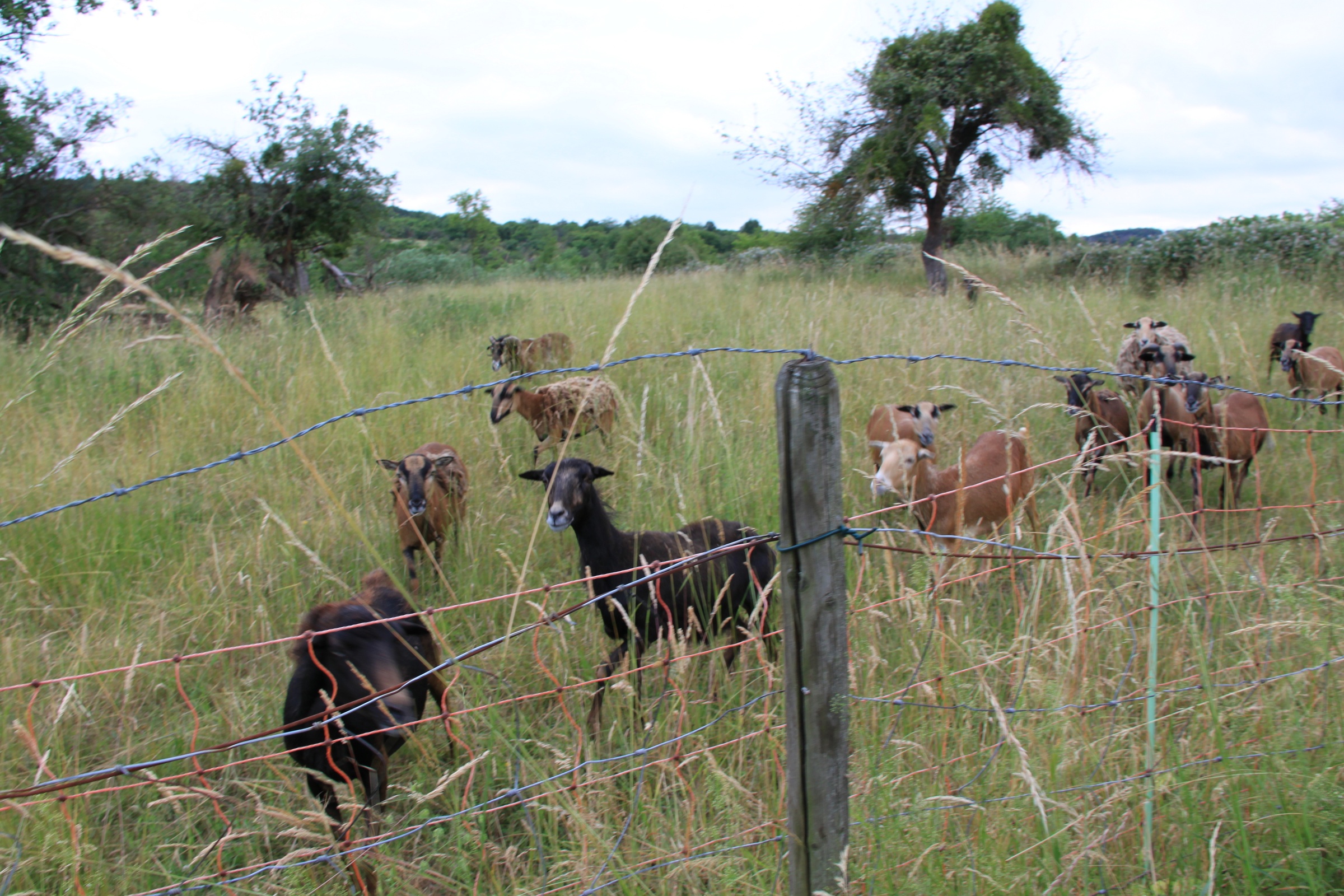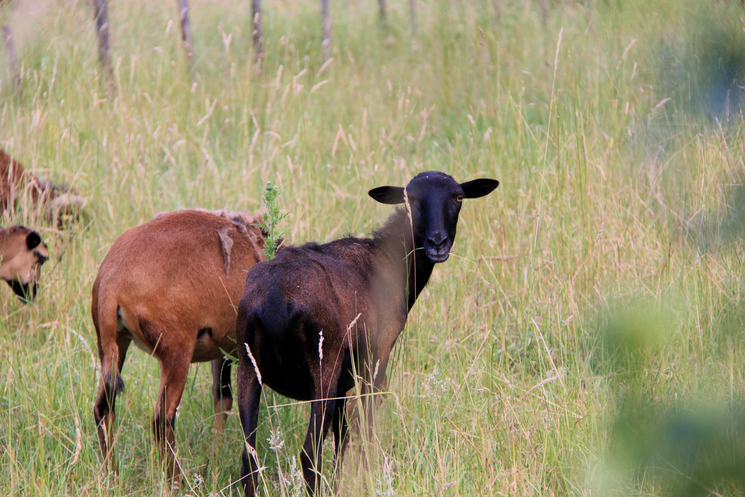 On the way back I passed by a couple of Cameroon sheep. One of them (the black one on the left) looked at me, bleated, and thereby rallied all the others to gather around me.