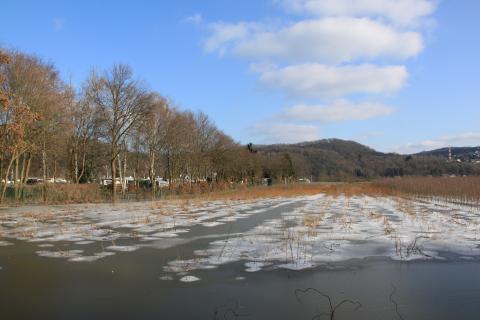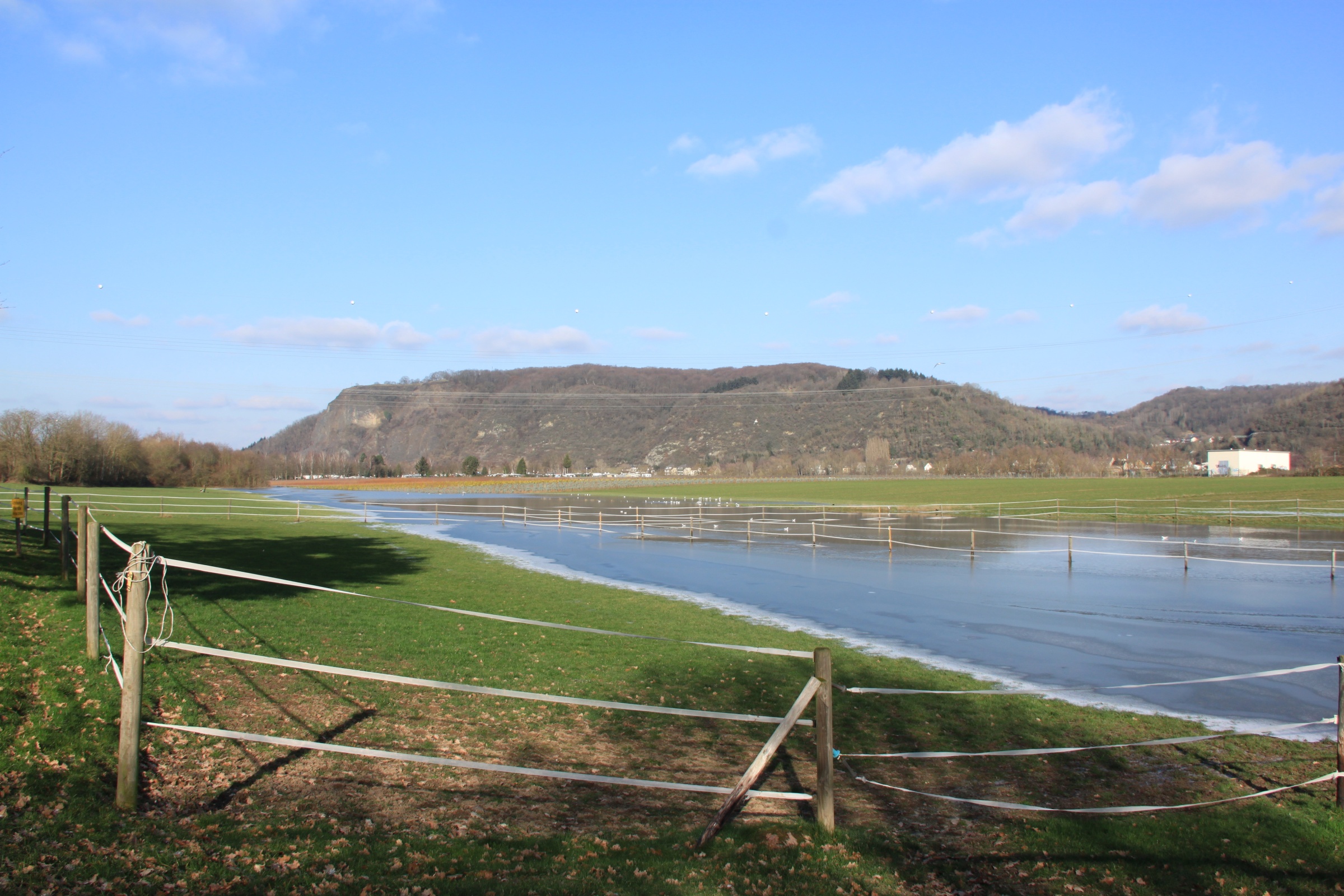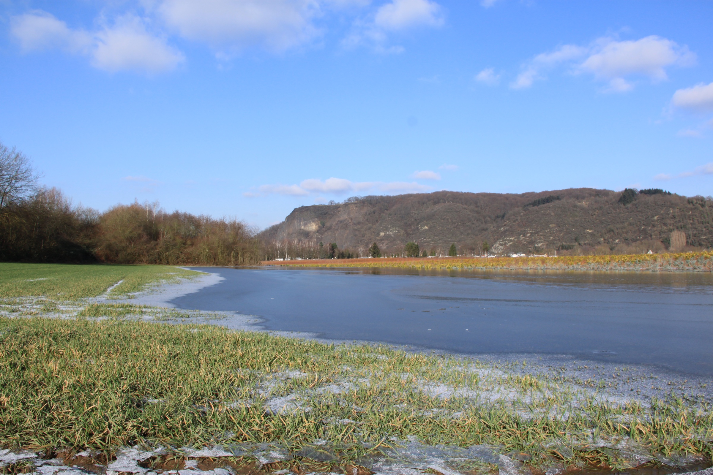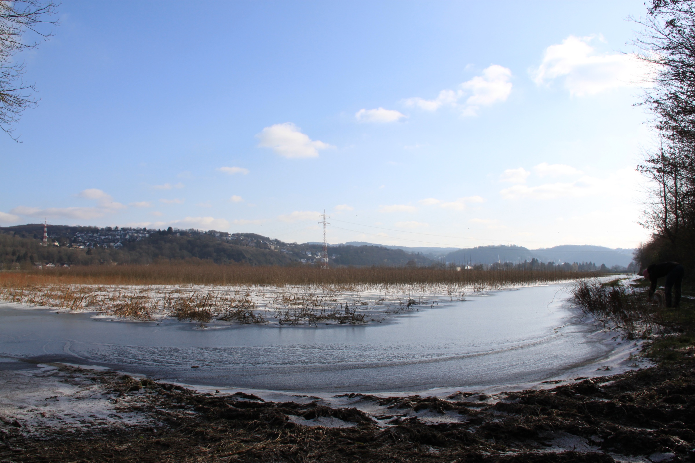 The Rhine's flood was receding, leaving behind large puddles, and these in turn were partly frozen over.