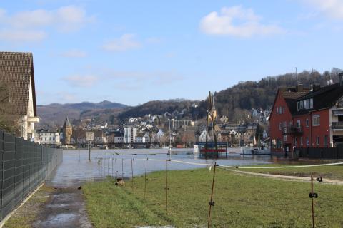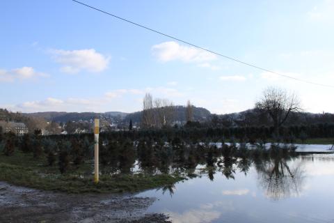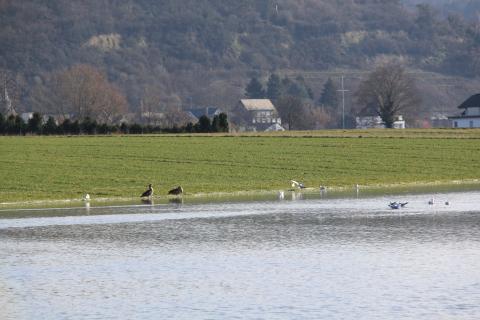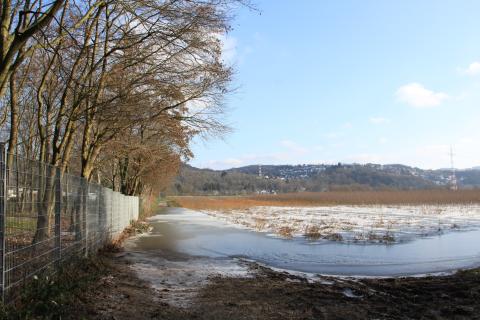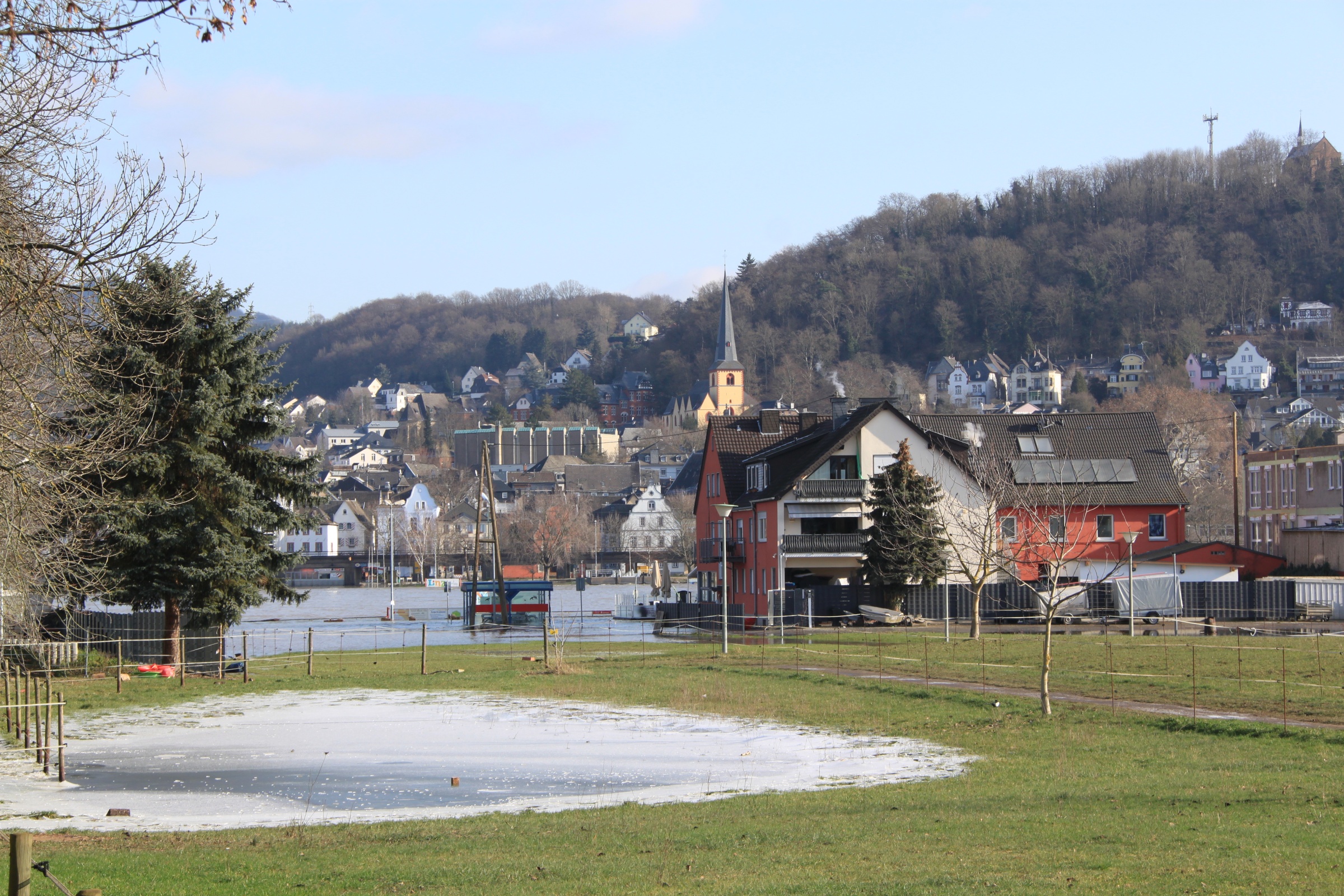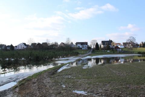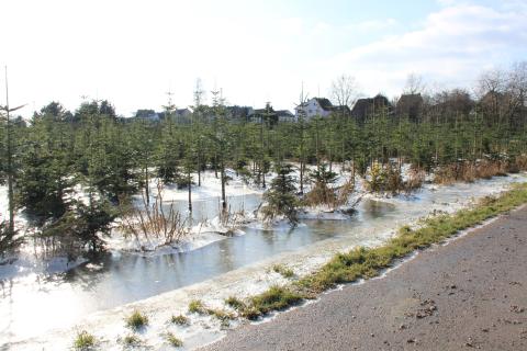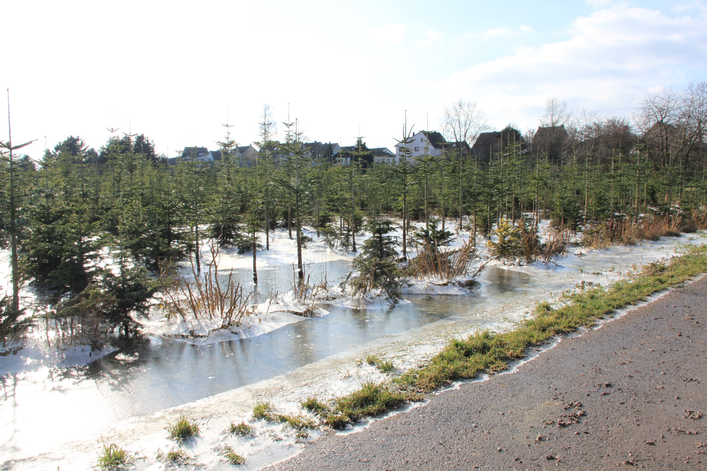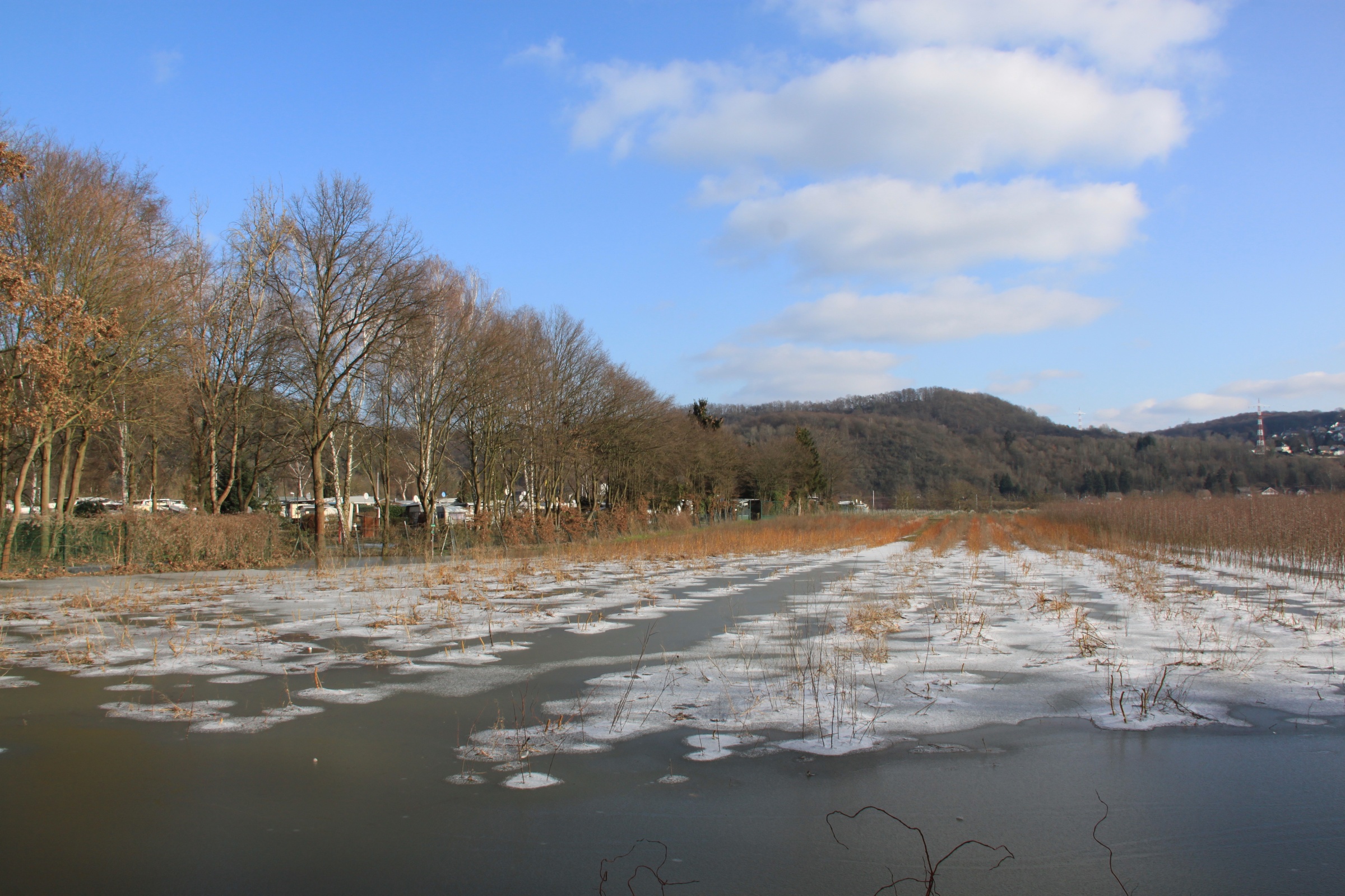 The Rhine's flood was receding, leaving behind large puddles, and these in turn were partly frozen over.