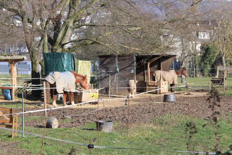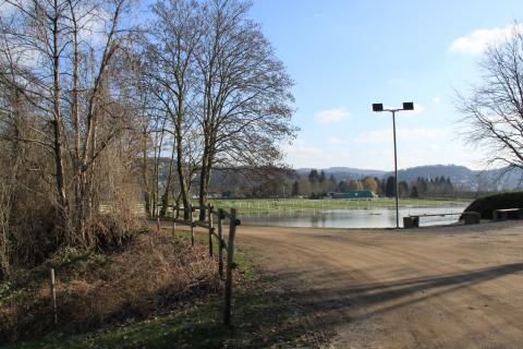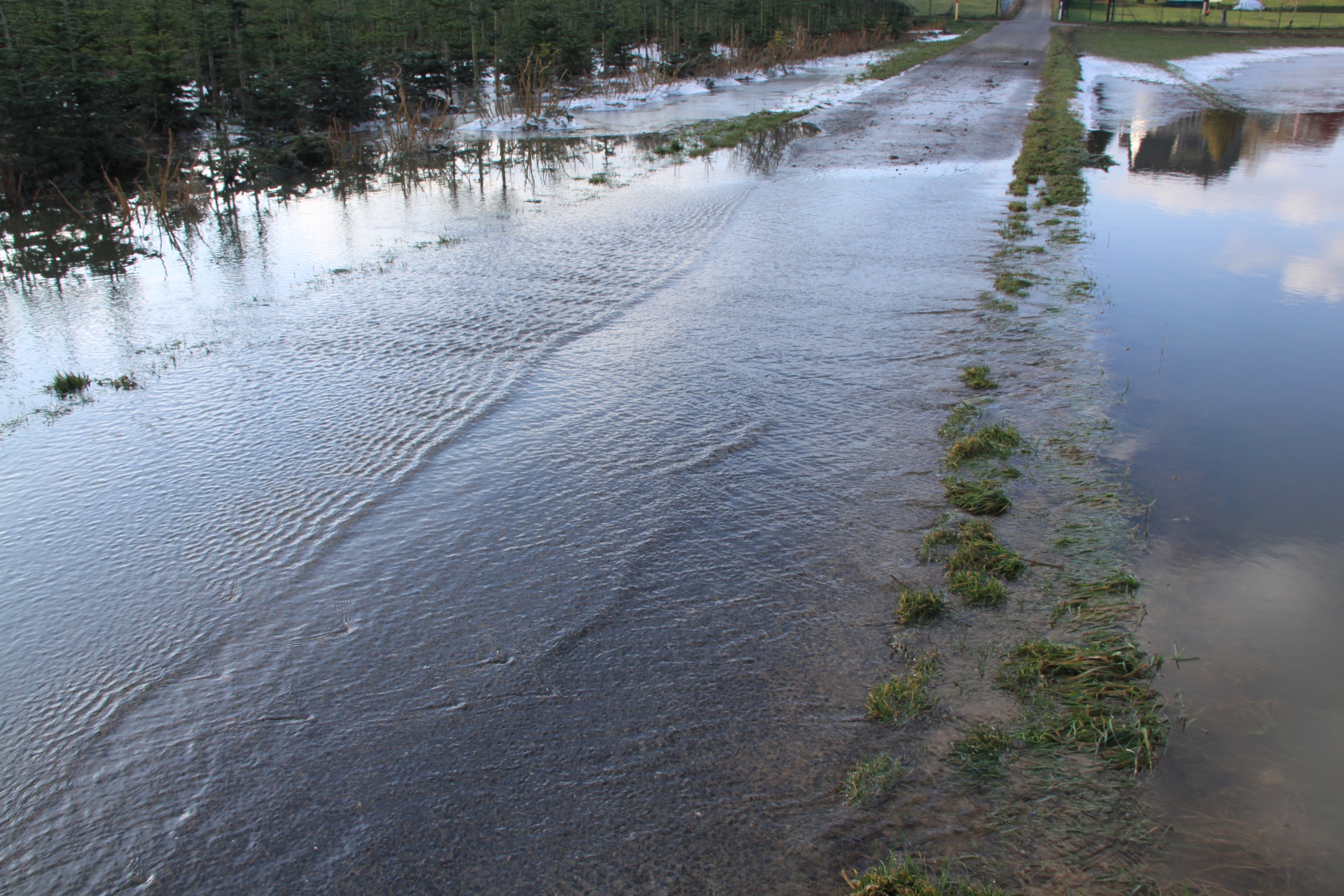 This particular one, covering a field and an area for horses, had assumed the character of a small lake. Waterfowl like ducks, gulls, and geese milled on its shore, and its surface was rippled by the wind.