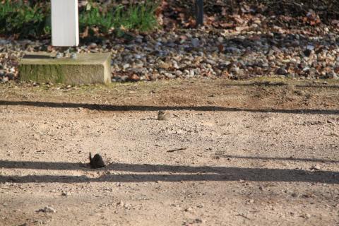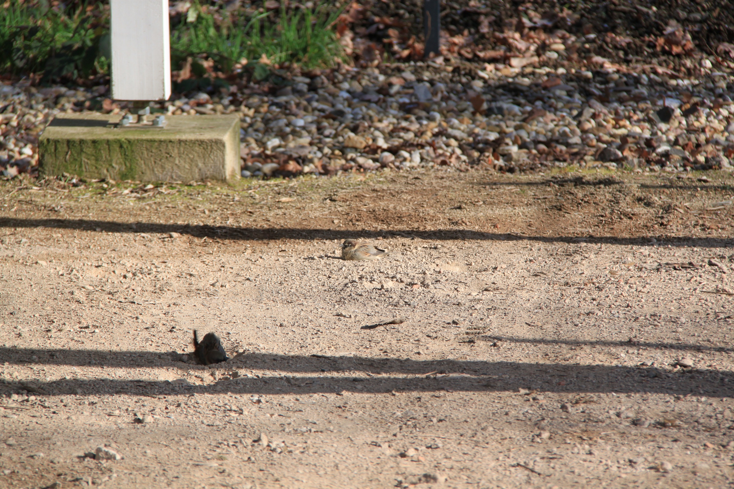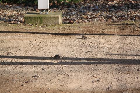 These little birds had half-buried themselves in the warm dirt, which they threw up in the air upon themselves.