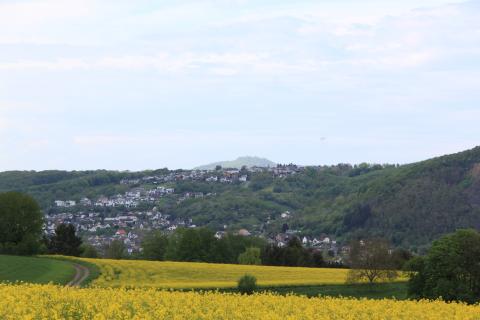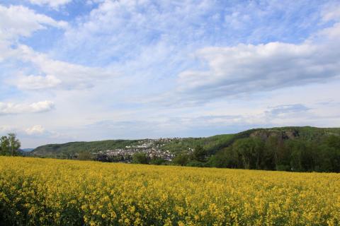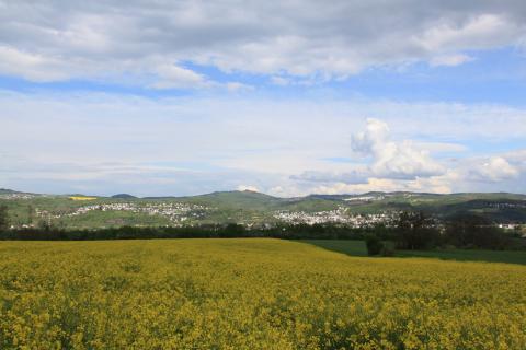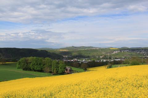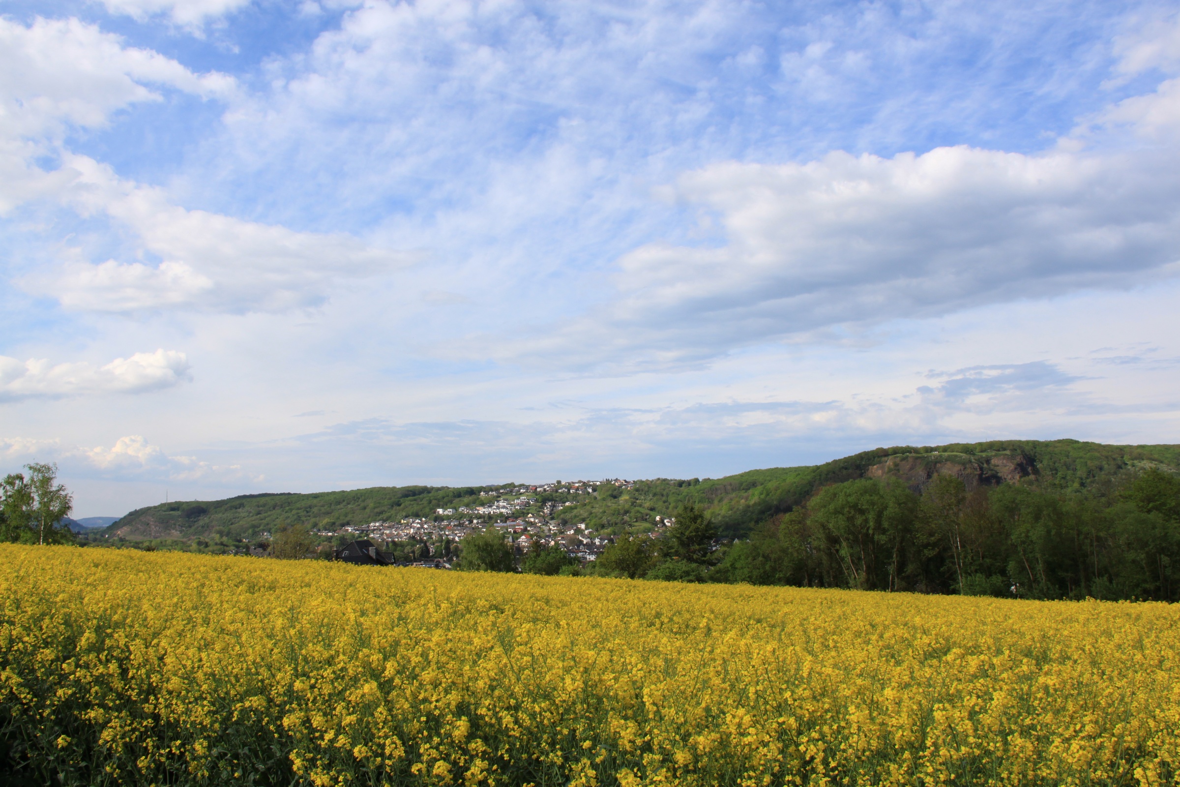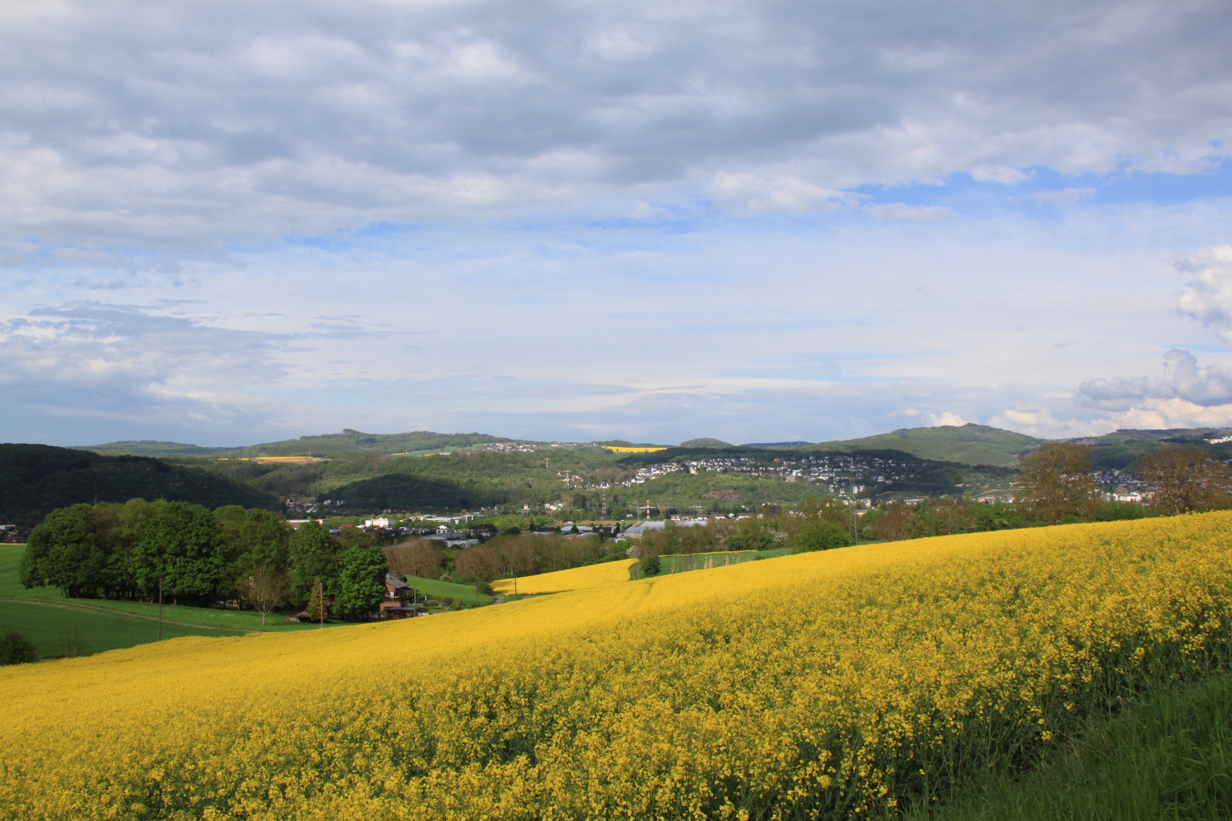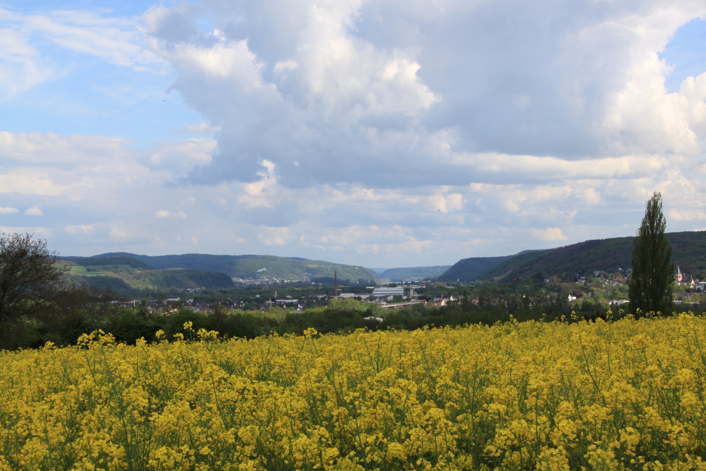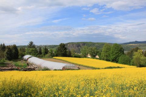 As the clouds drift by and the sun comes and goes, the scenery changes. Hit by the sunlight, the flowers glow brightly; in the shade, they provide a more muted contrast to the mountains in the distance.