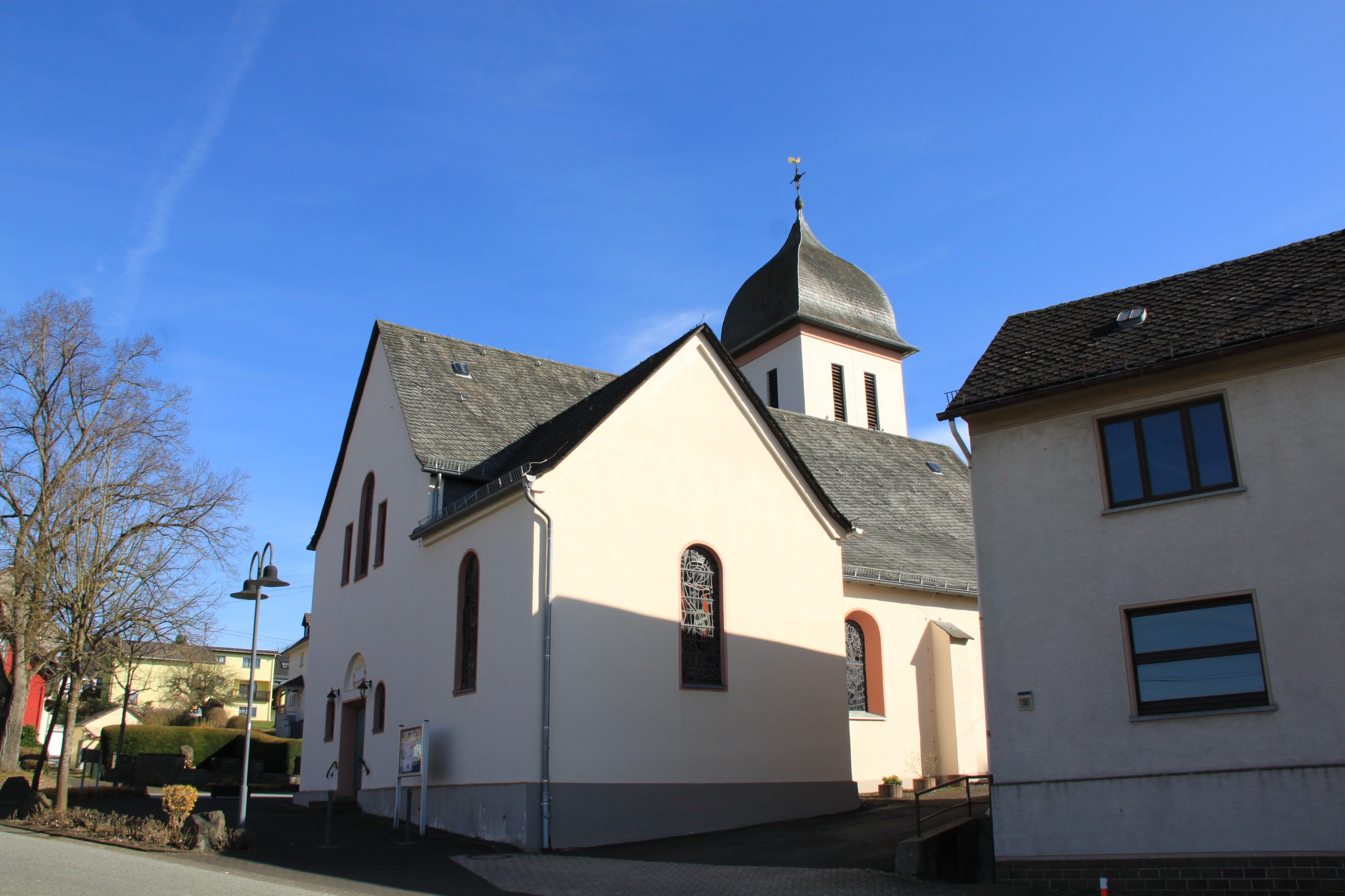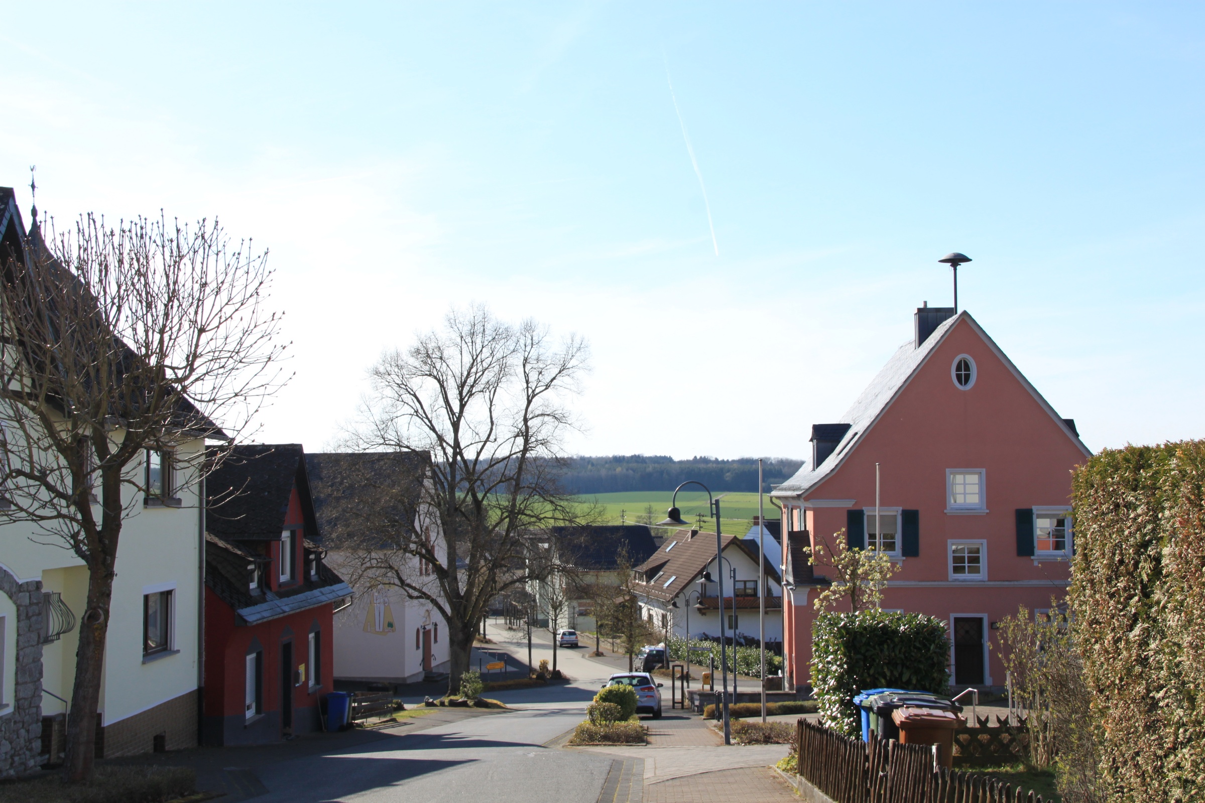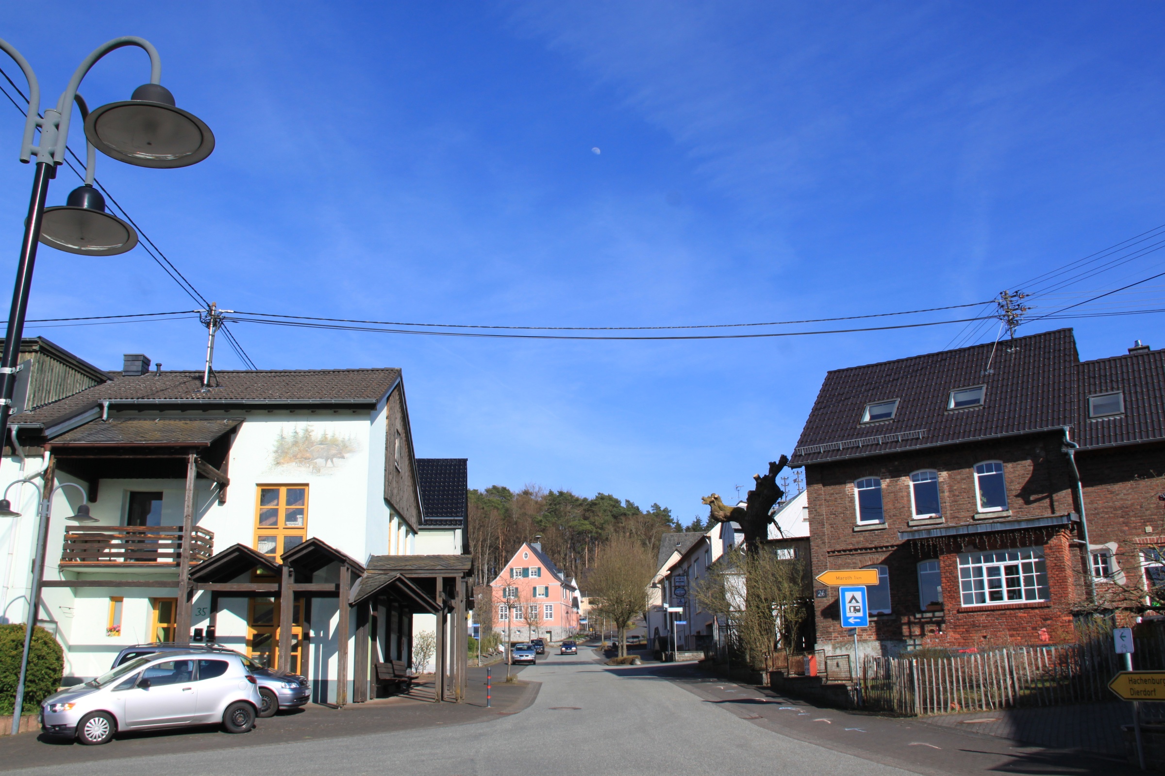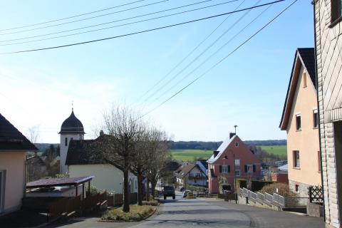 Marienhausen is a little village in the Westerwald region, laid picturesquely against a hill if you approach it from one direction (unfortunately nophotos of that.) A main street runs from an uninteresting more recent residential area uphill down past the church until it forks and leads to more widely spaced old farmsteads and some newer homes.