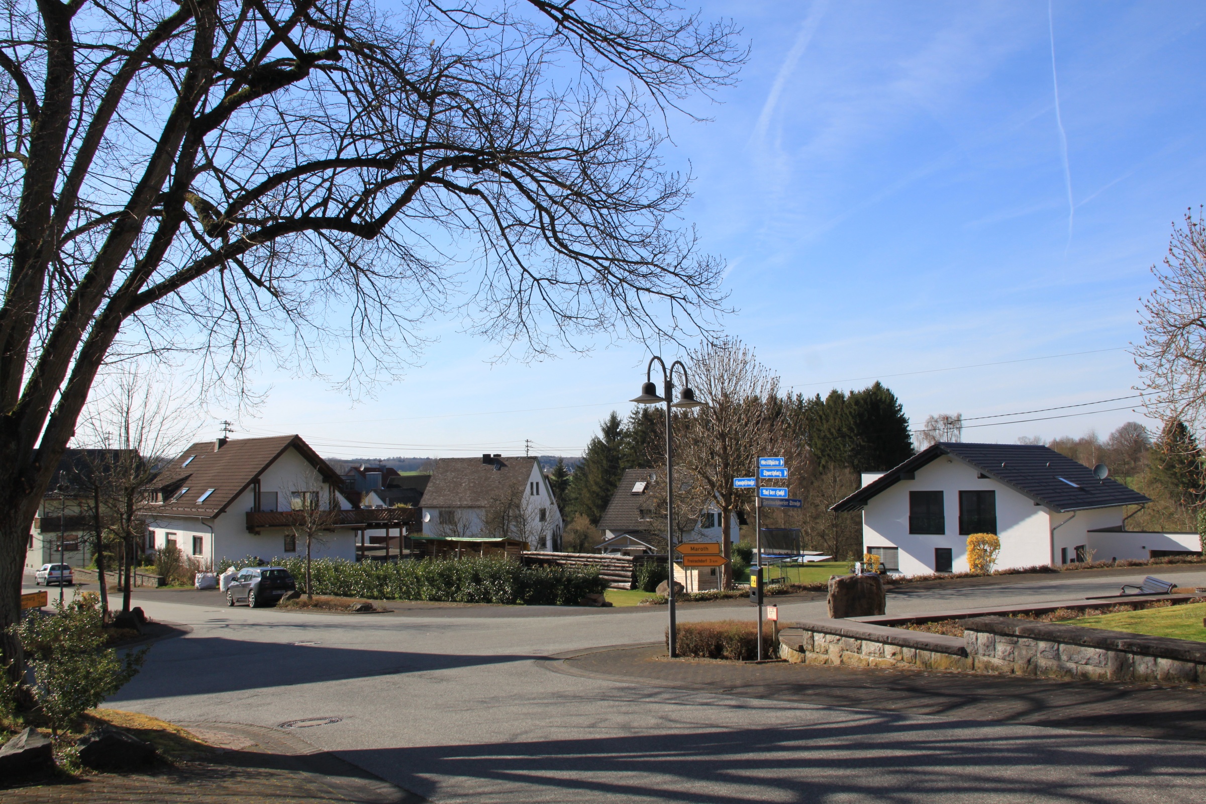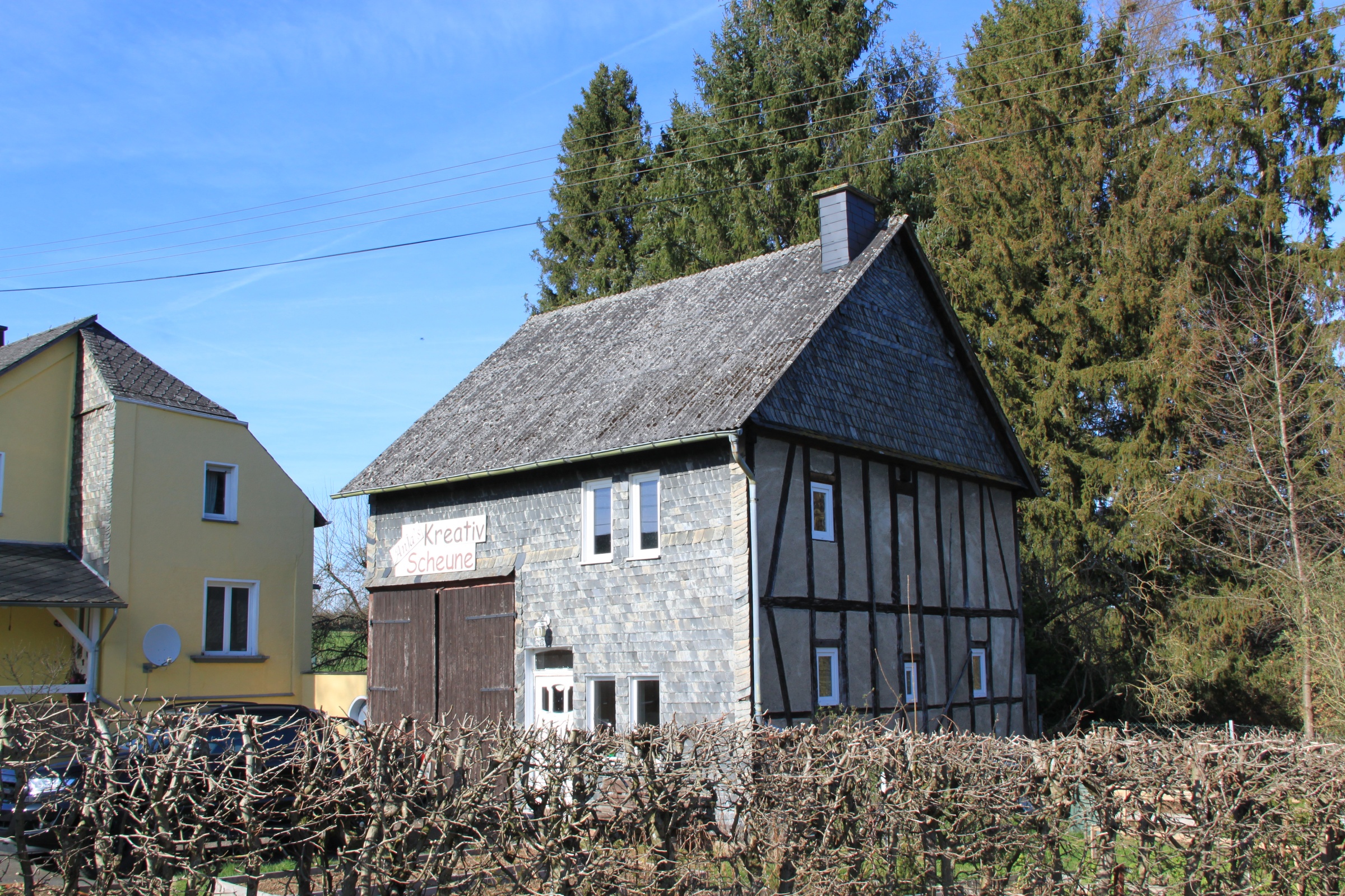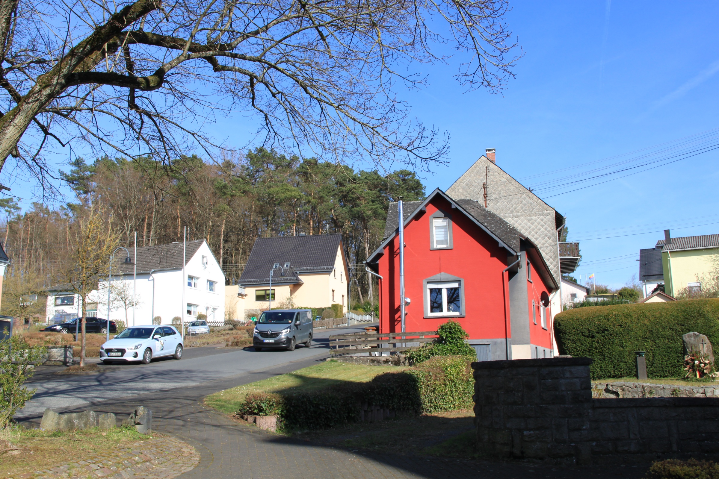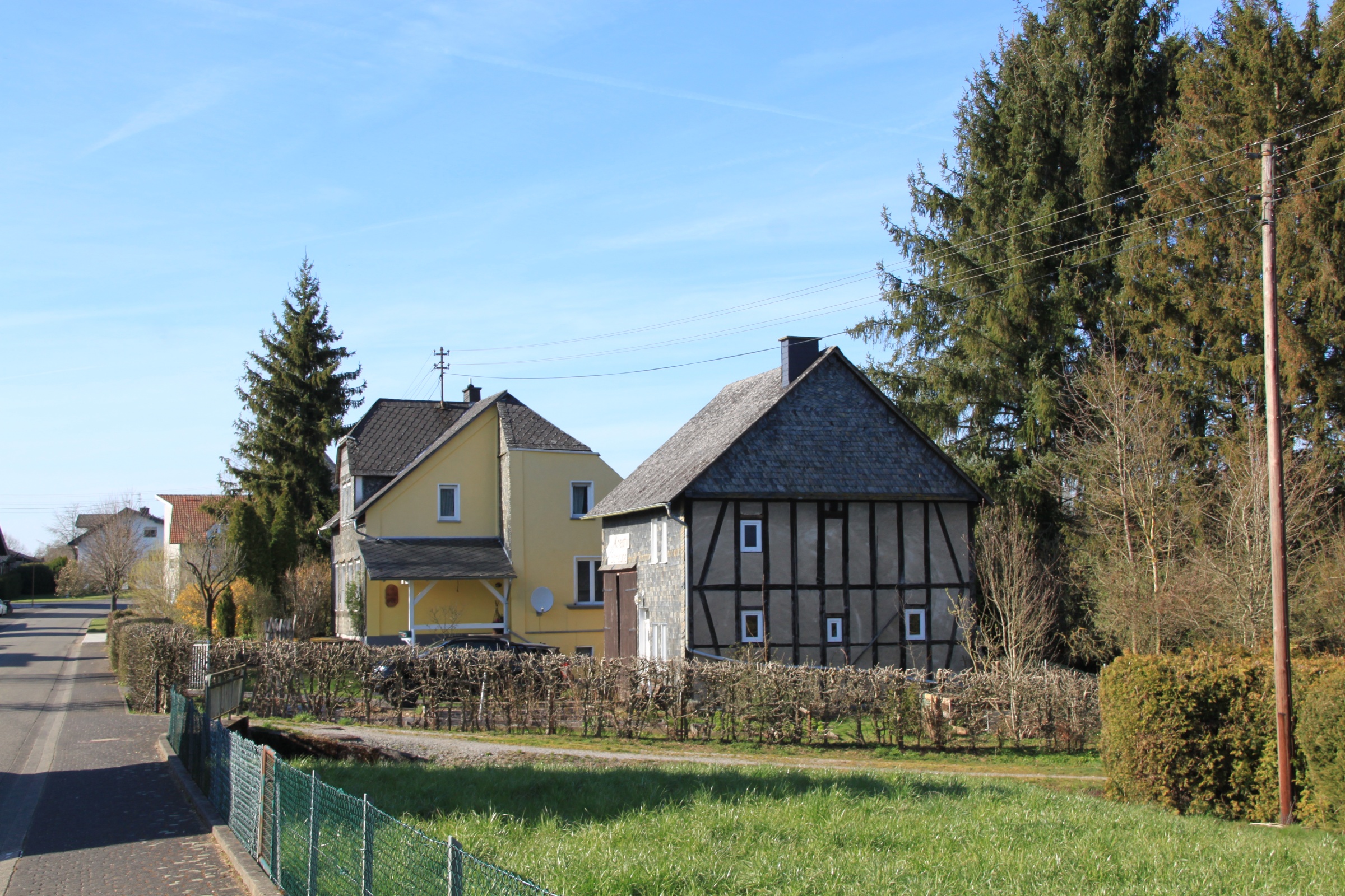 Marienhausen is a little village in the Westerwald region, laid picturesquely against a hill if you approach it from one direction (unfortunately nophotos of that.) A main street runs from an uninteresting more recent residential area uphill down past the church until it forks and leads to more widely spaced old farmsteads and some newer homes.