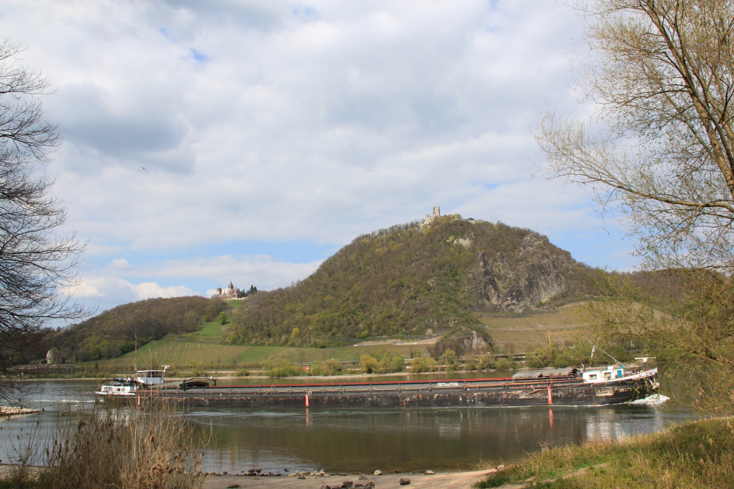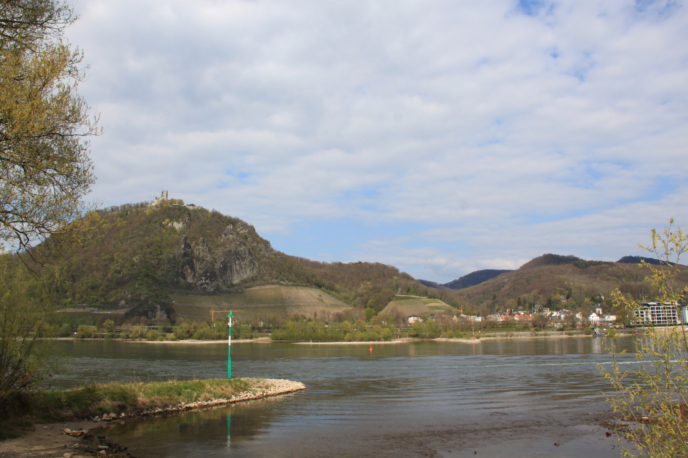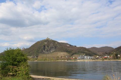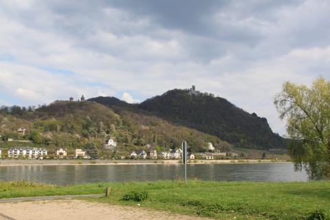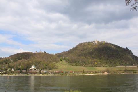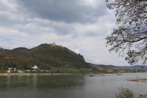 ...and back to the Rhine, towered over by the weathered ruins of Castle Drachenfels.