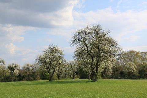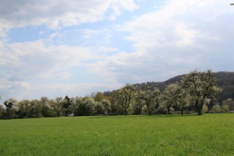 Farther upstream the houses give way to a camping site and finally meadows and groves.