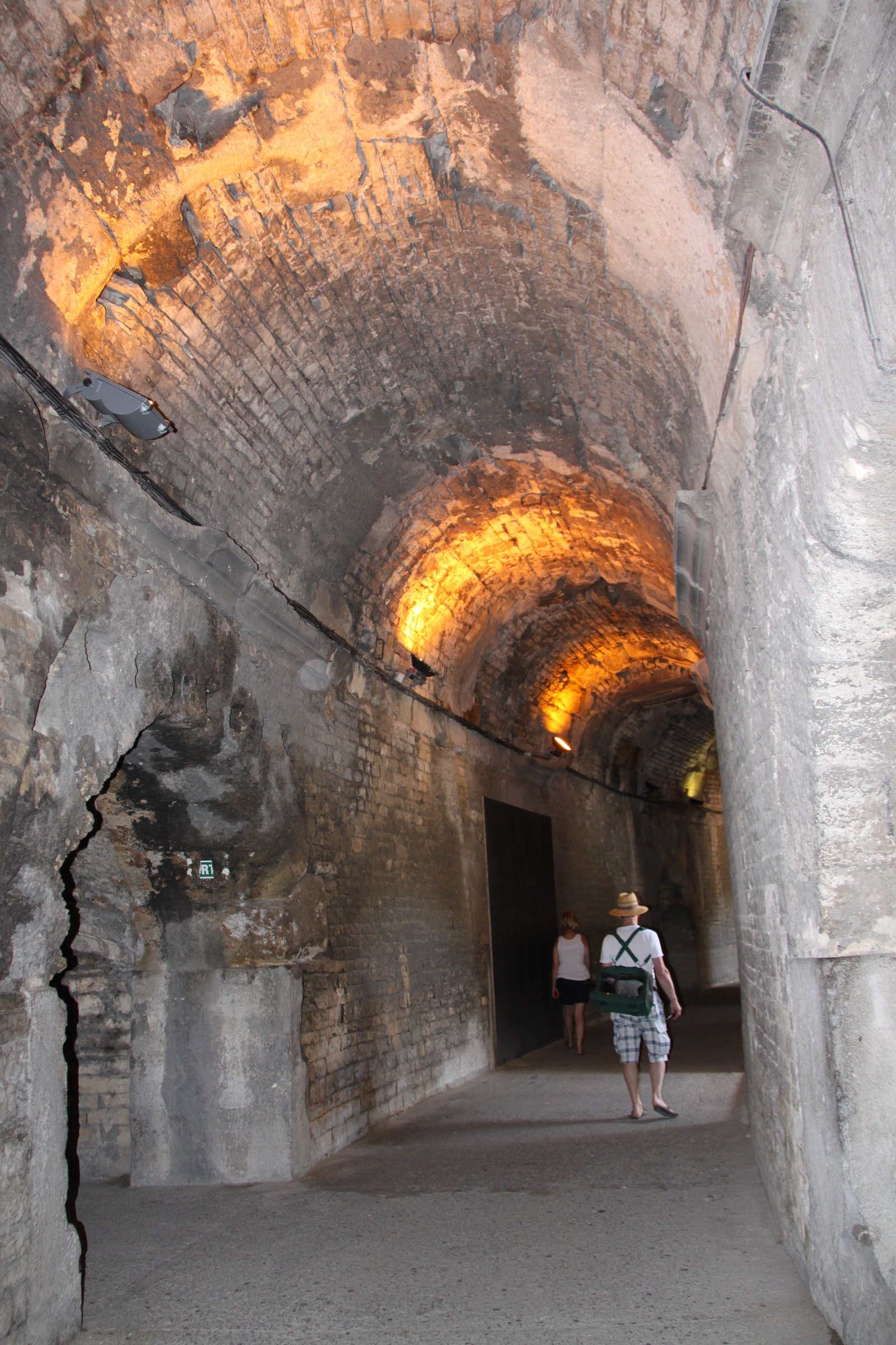 Following the fall of the Western Roman Empire and the end of the gladiator battles it once hosted, the arena was used as a fortress by the invading Visigoths. It served as a citadel to Nîmes's mediæval inhabitants, who turned into a fortified village.