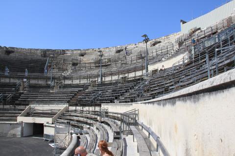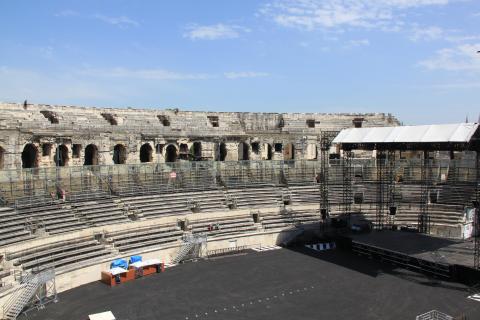 Following archeological excavations under Emperor Napoleon III, the then-ruins of the amphitheatre were extensively rebuilt and renovated, and to this day are a venue for sports competitions, concerts and other public events.