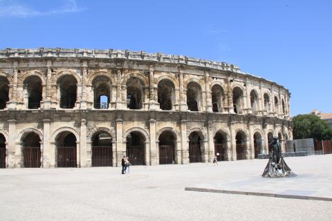 The amphitheatre of Nîmes dates back to the late 1st century A.D..