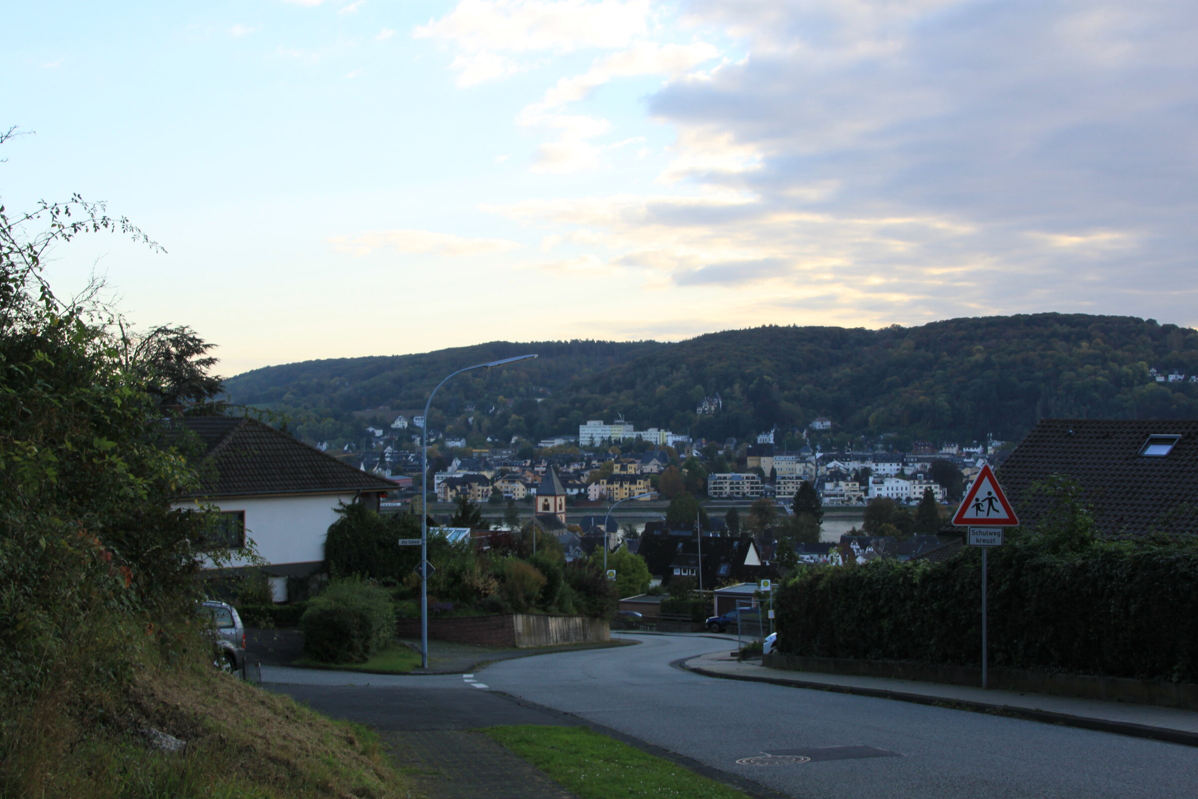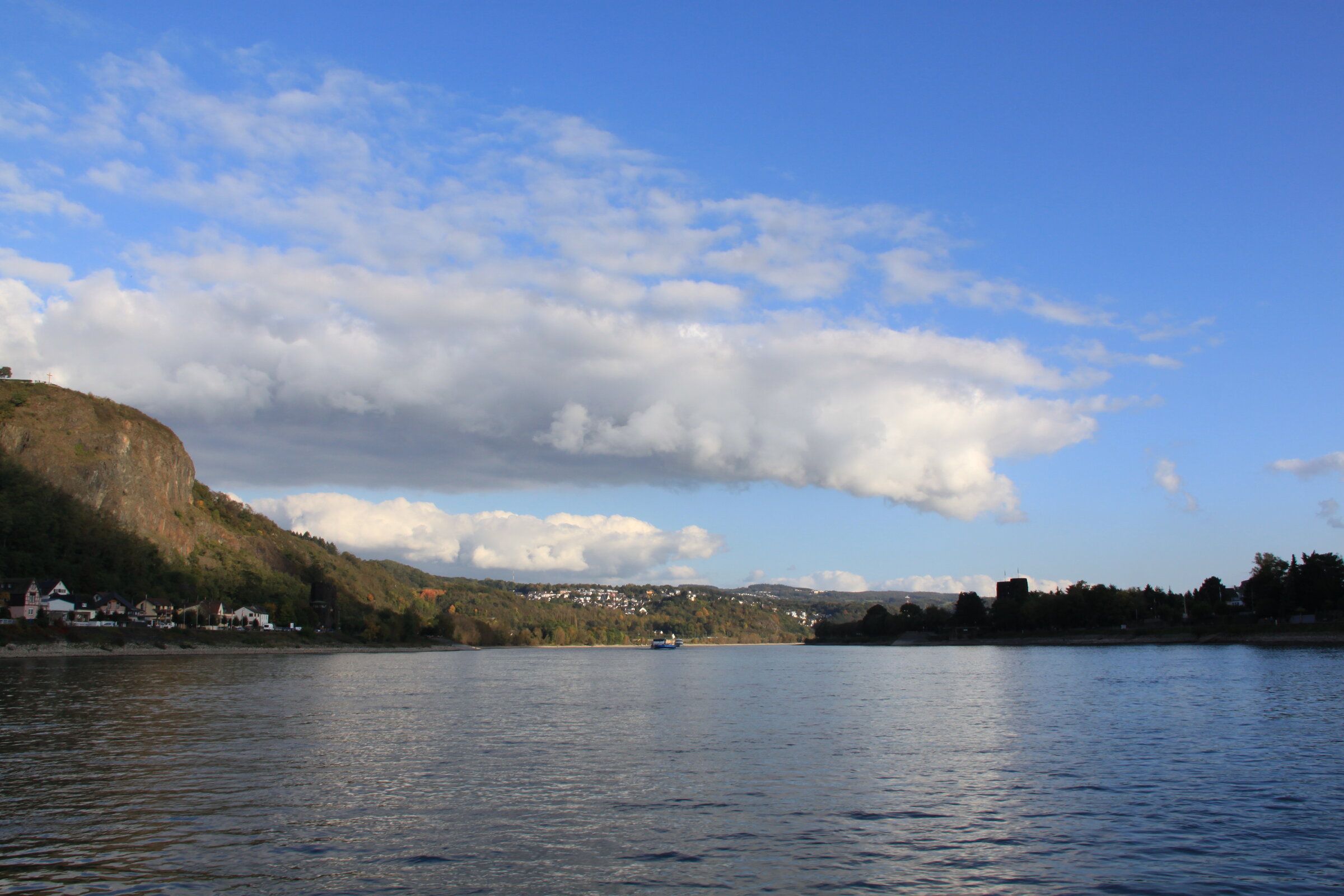I took the ferry over the Rhine to see whatever village to which belongs the church spire atop the ridge behind Erpel.