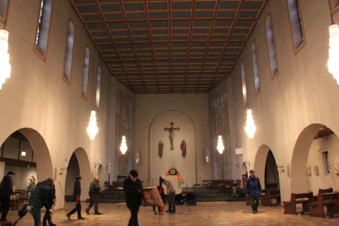 The church was being cleaned as the parish had decided to replace the pews with chairs, to be arranged in a half-circle.