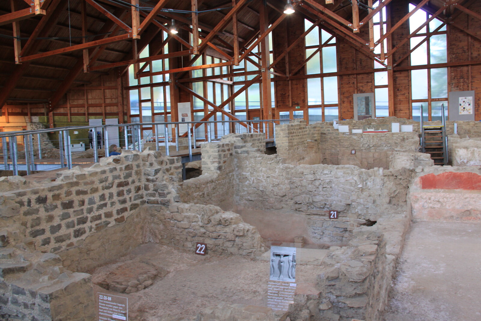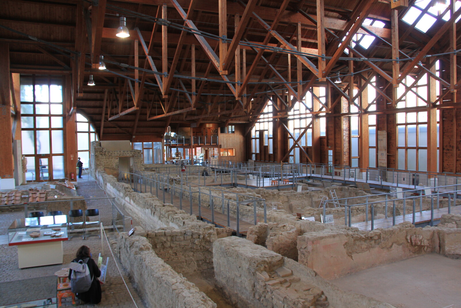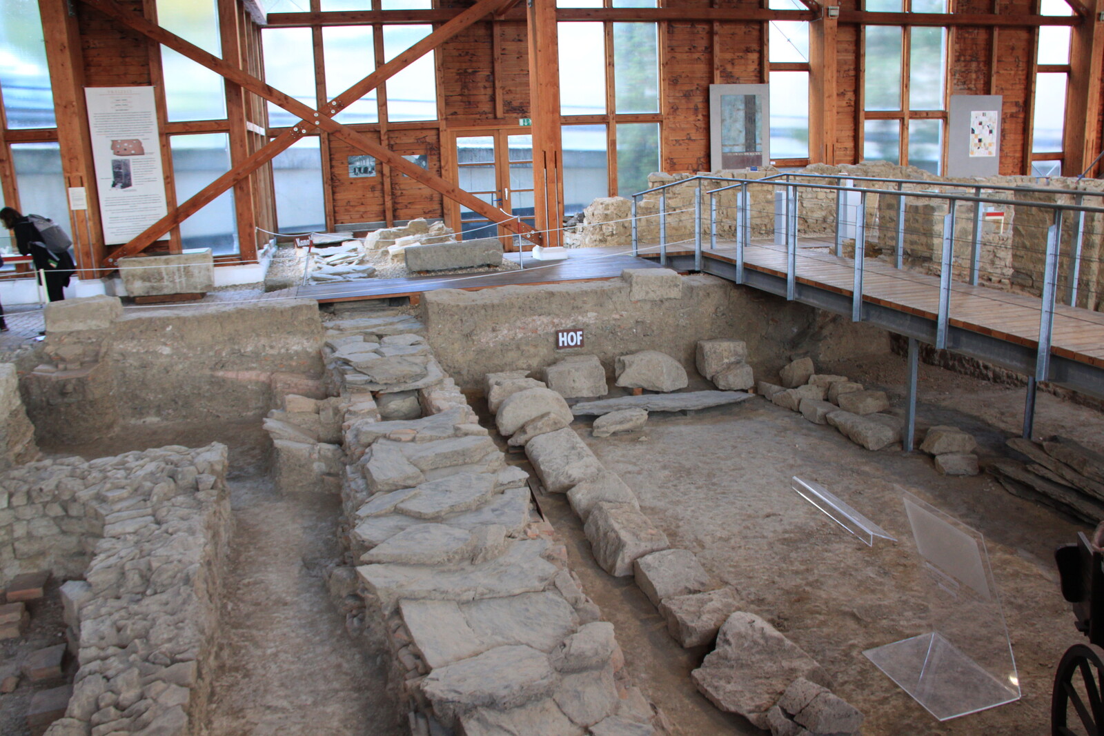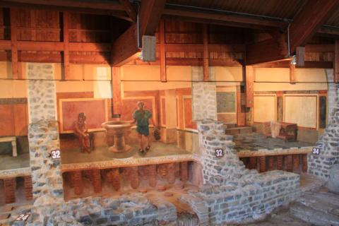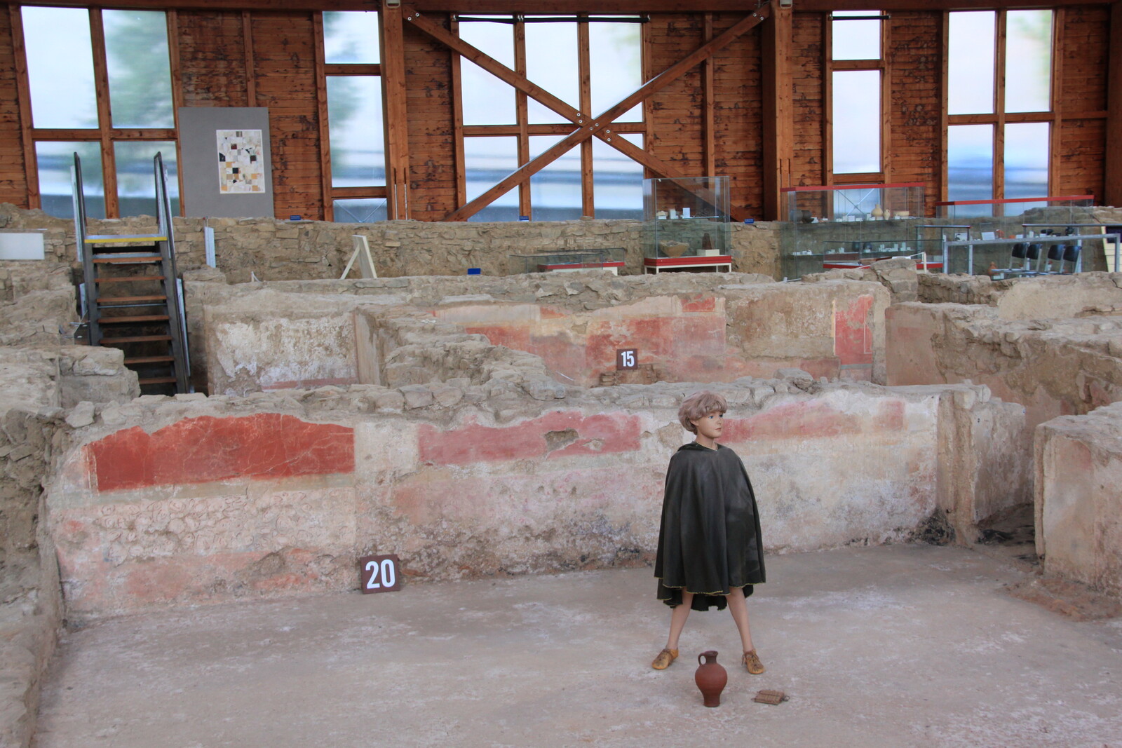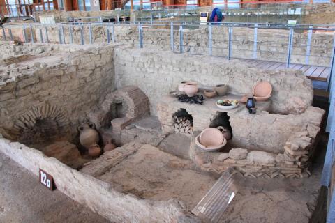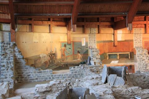 The museum also houses a lot of exhibits: finds from the site, reconstructions, and similar items from other sites. There are explanations of the building material and building techniques used, and displays of everyday items for personal hygiene, jewelry, and pottery.