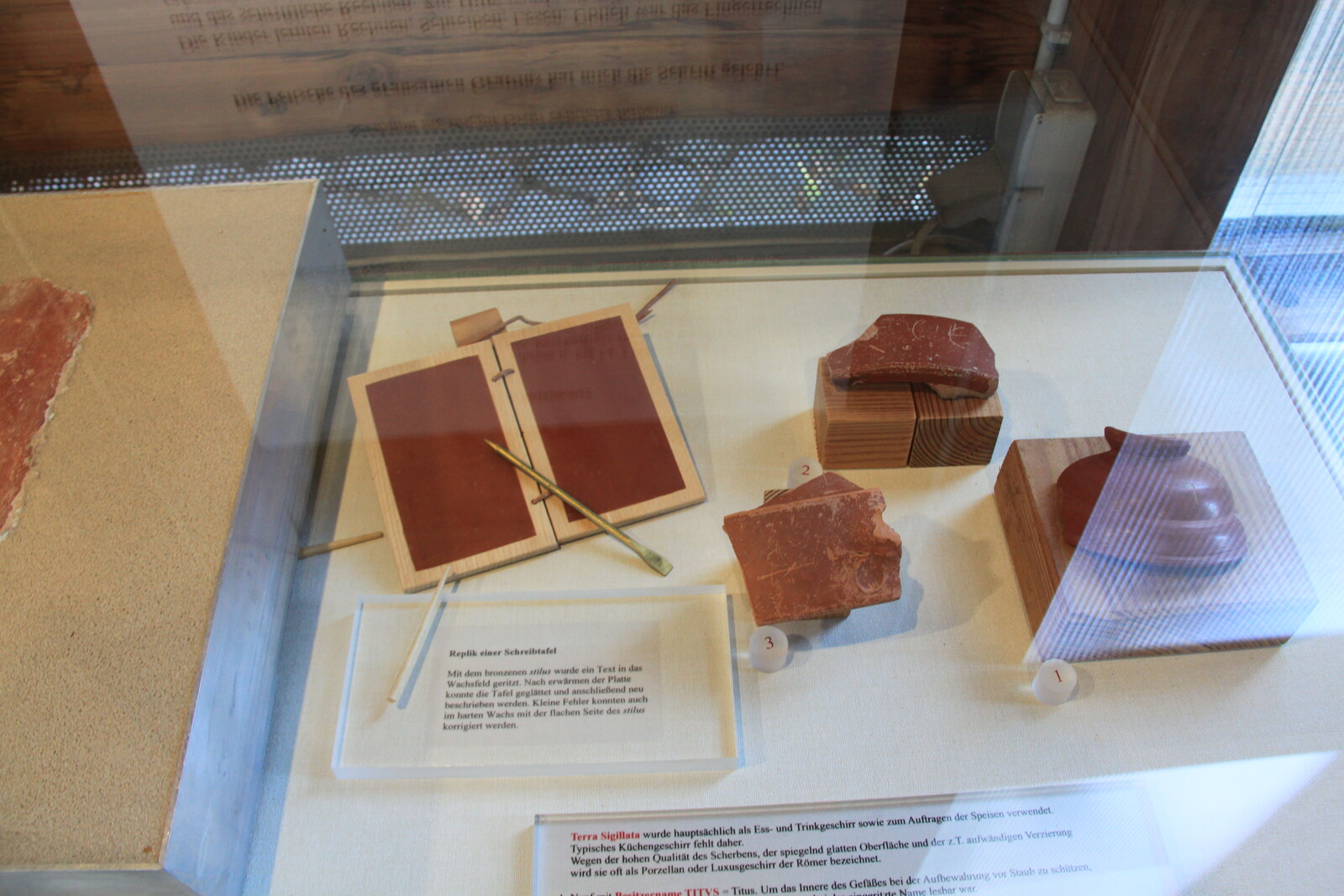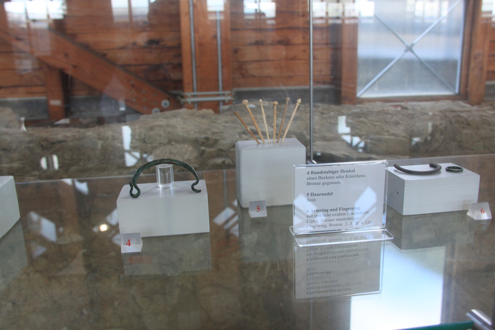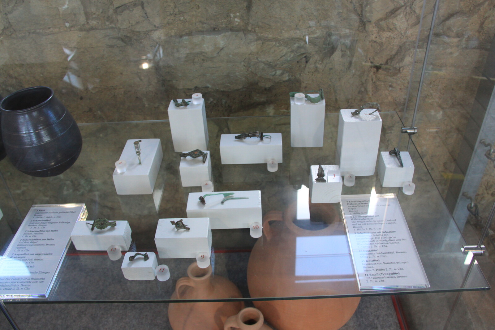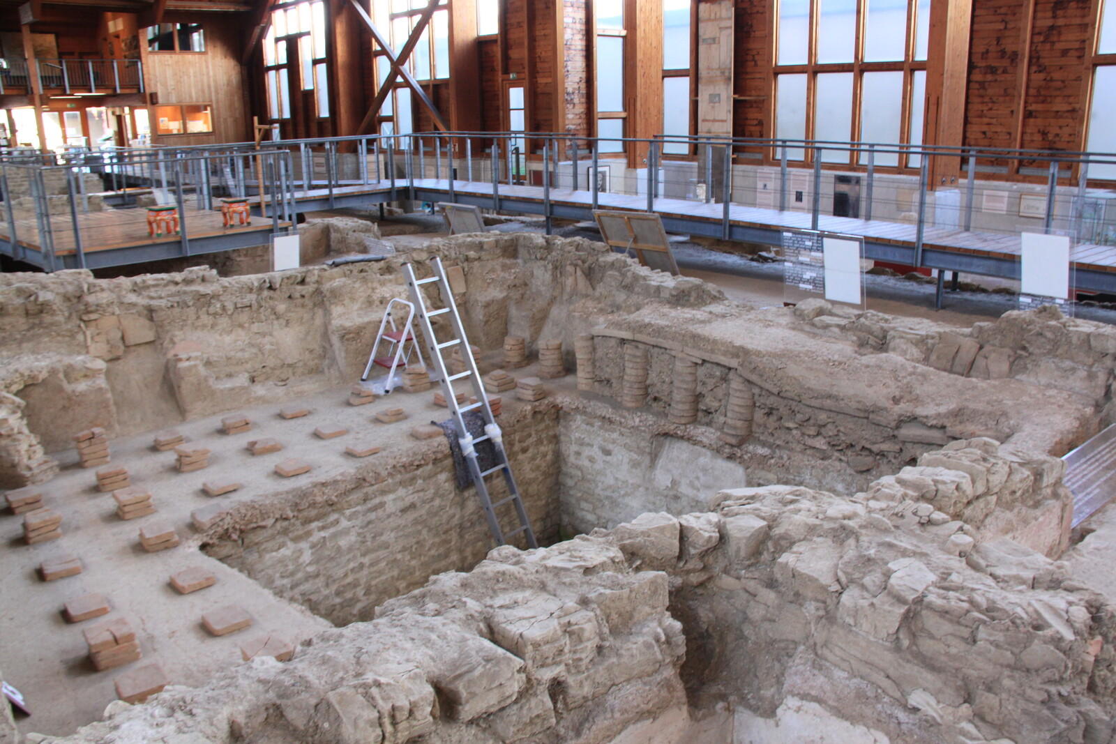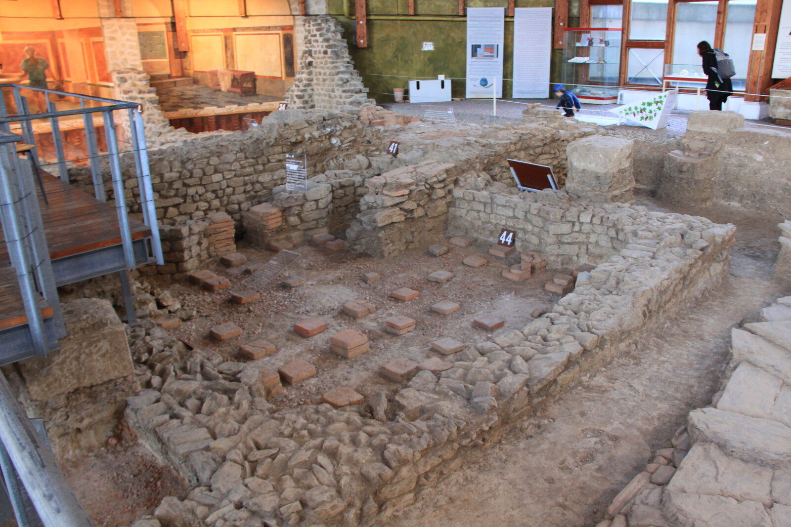 The museum also houses a lot of exhibits: finds from the site, reconstructions, and similar items from other sites. There are explanations of the building material and building techniques used, and displays of everyday items for personal hygiene, jewelry, and pottery.
