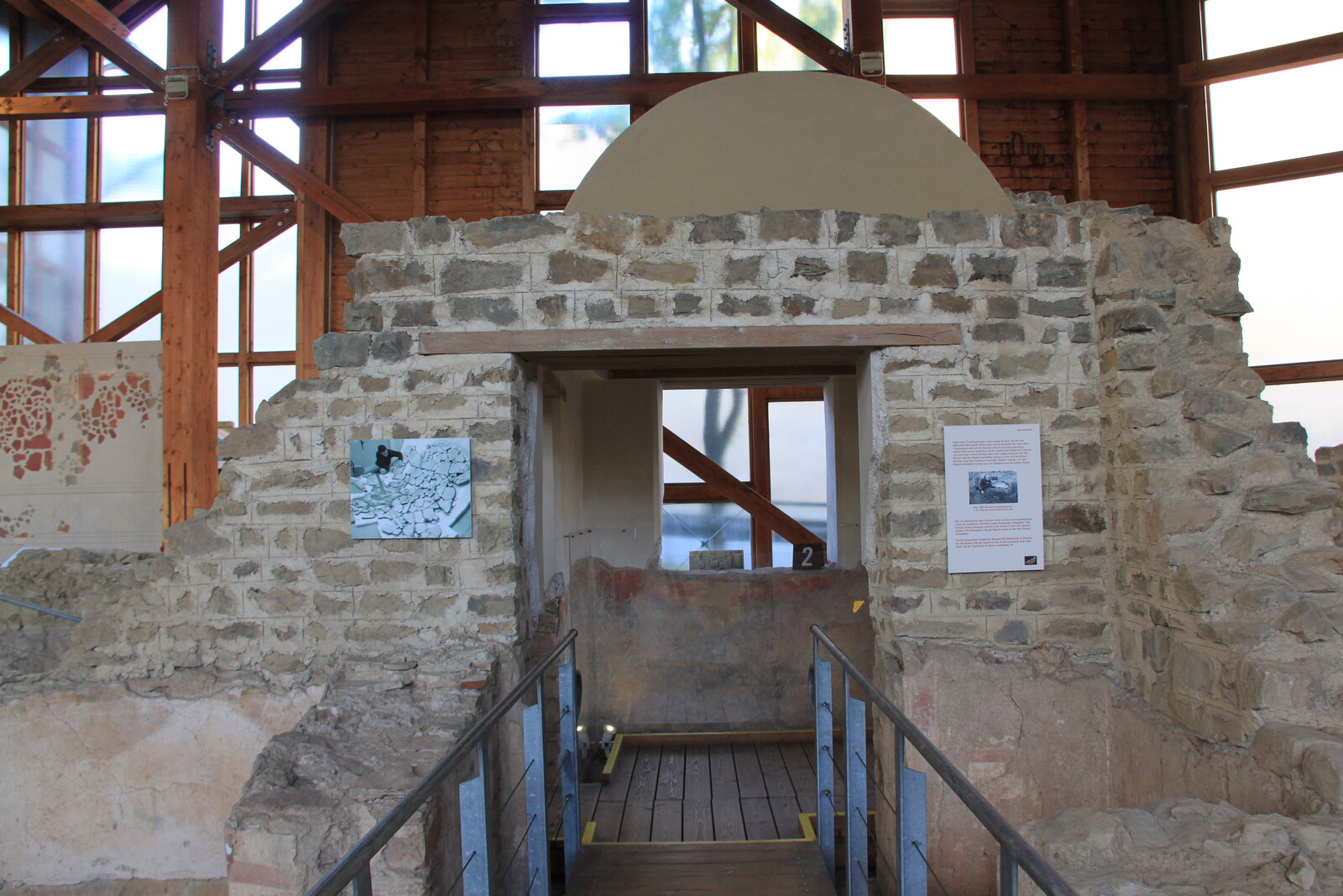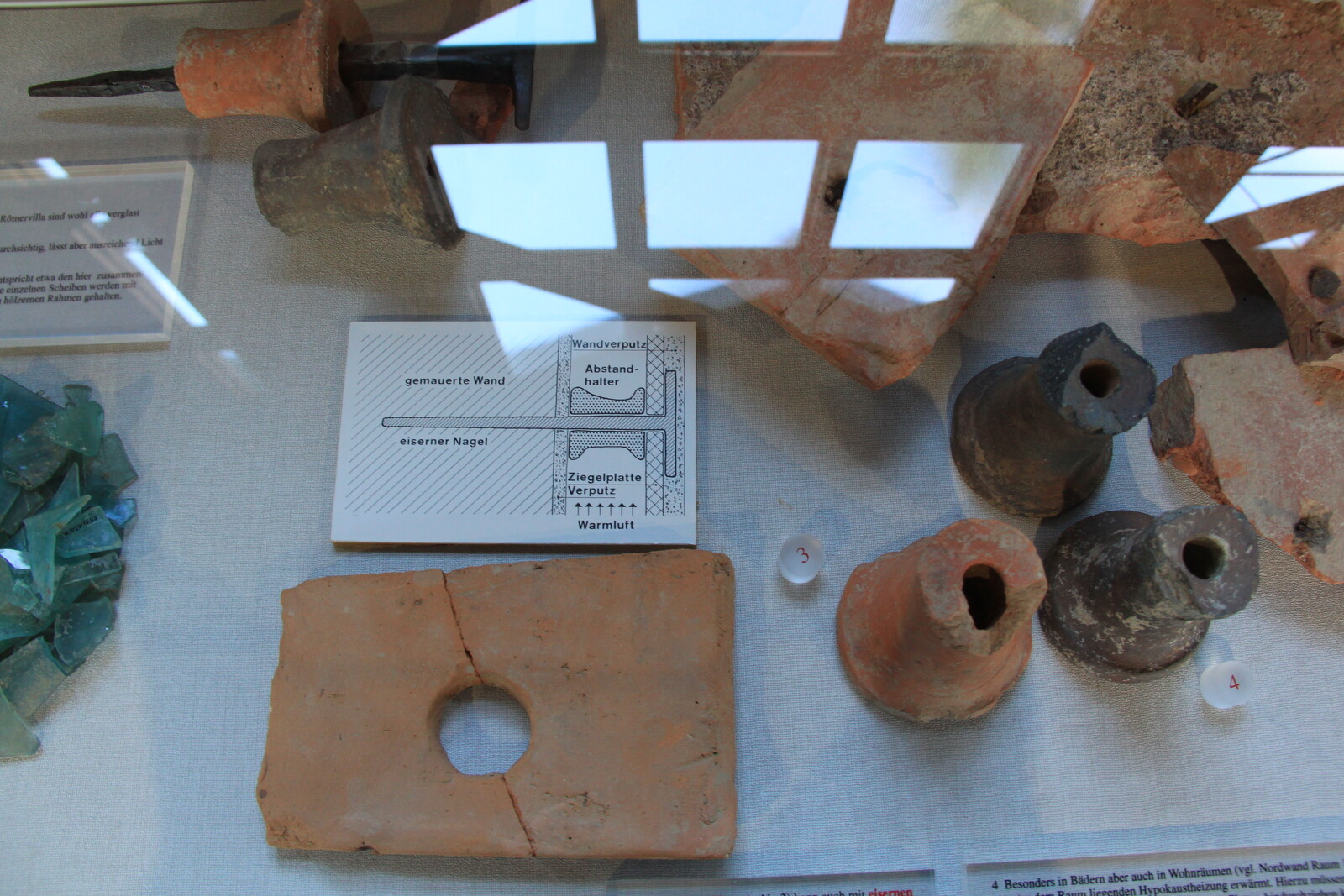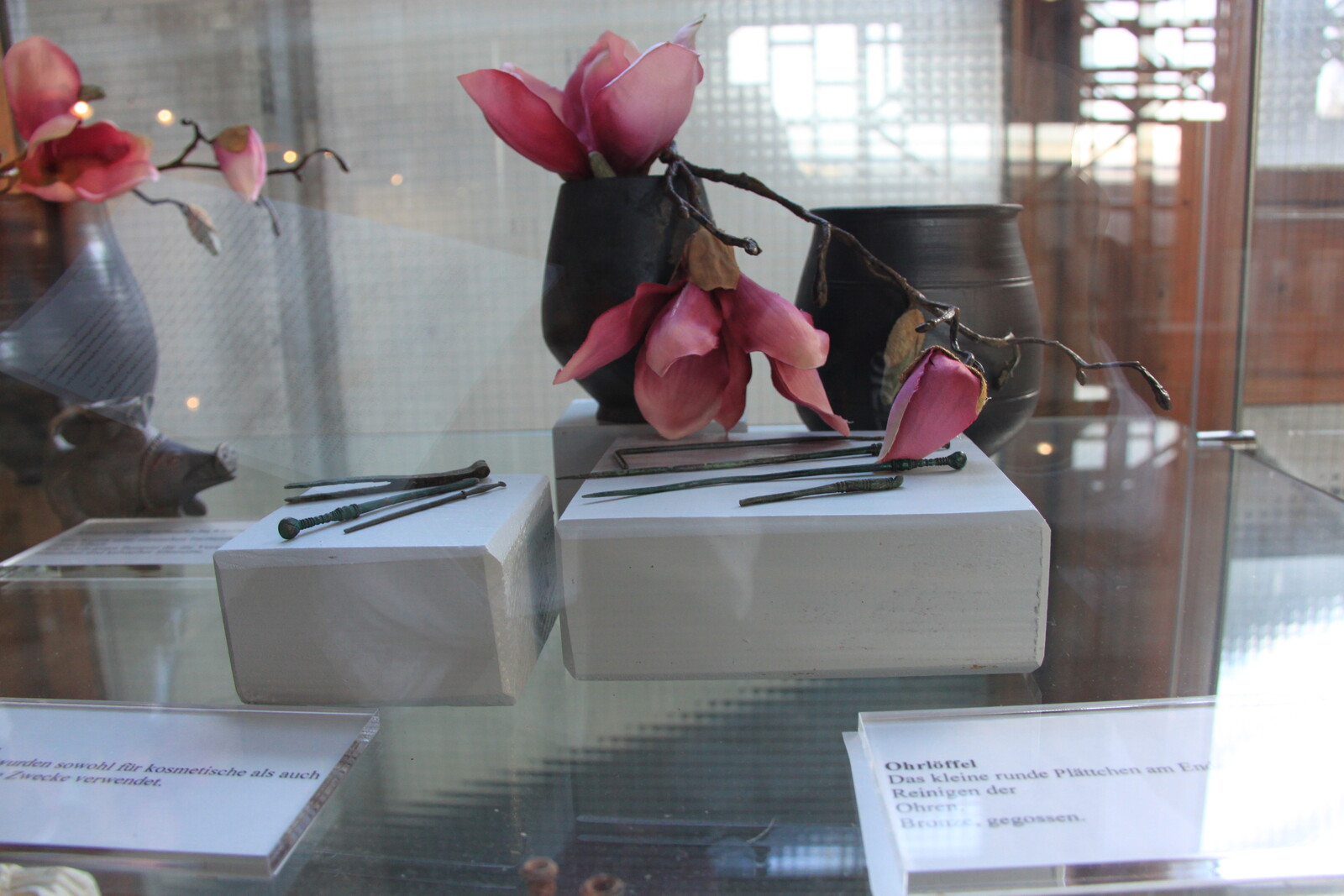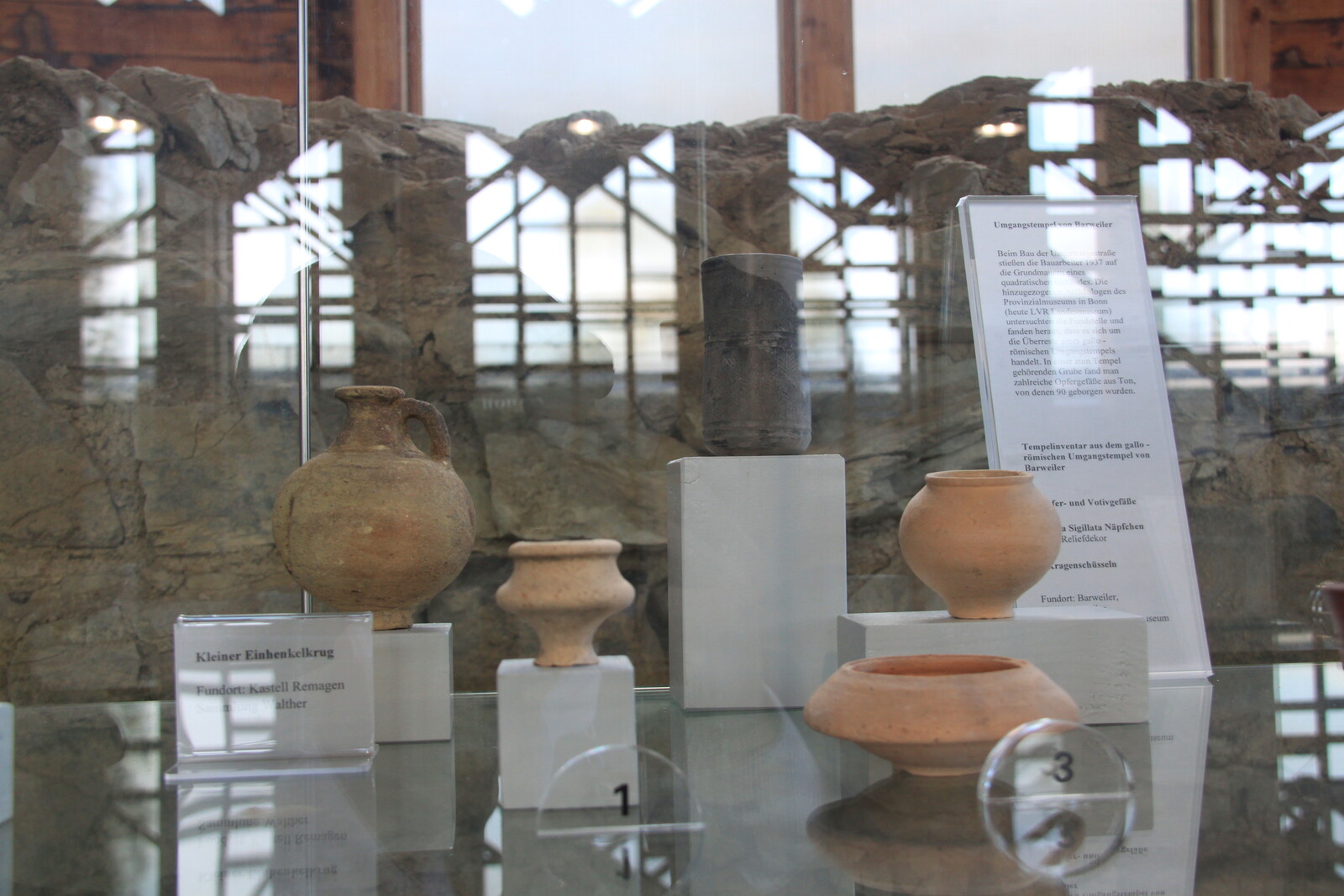 The museum also houses a lot of exhibits: finds from the site, reconstructions, and similar items from other sites. There are explanations of the building material and building techniques used, and displays of everyday items for personal hygiene, jewelry, and pottery.