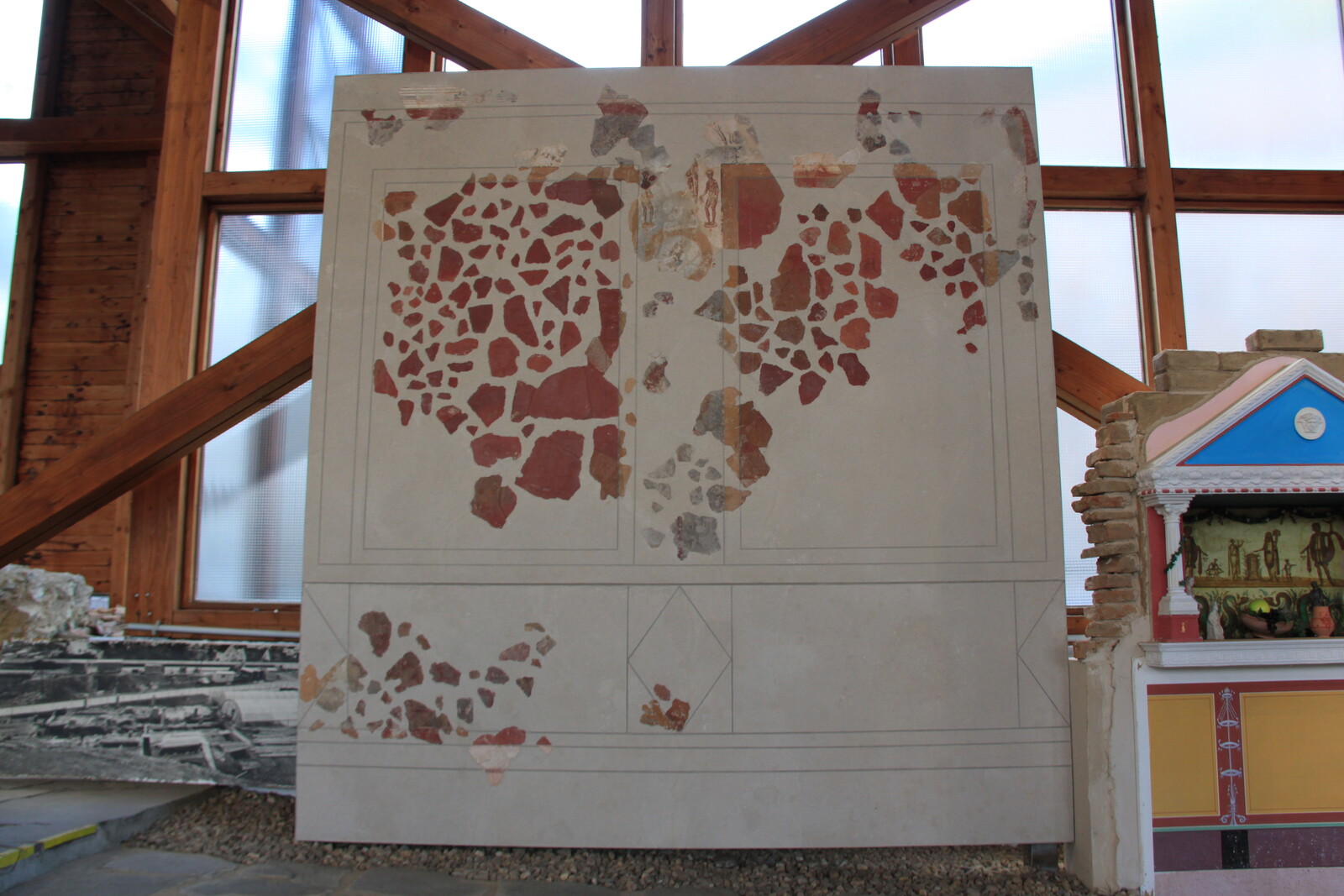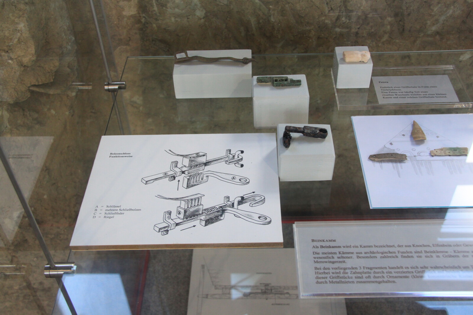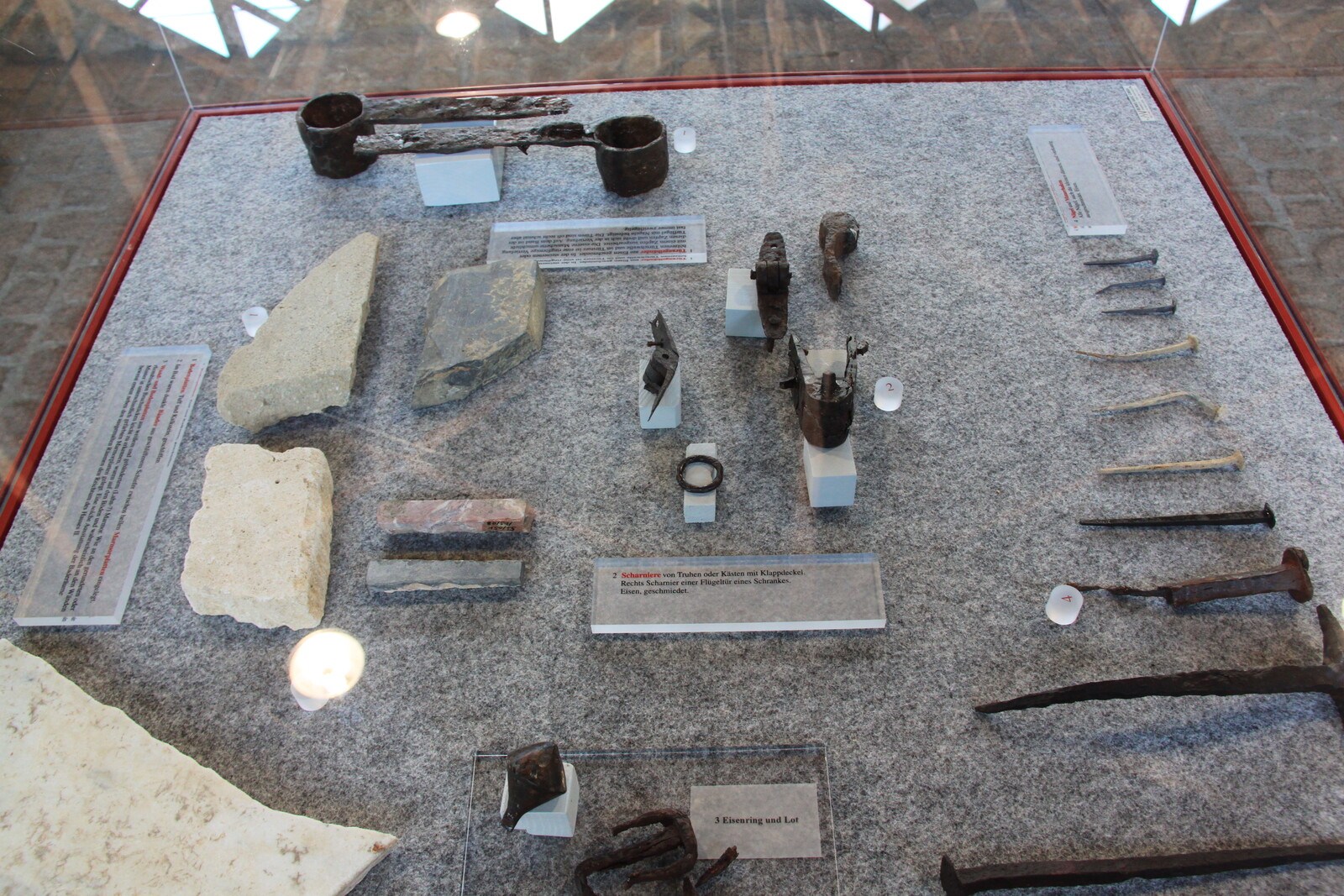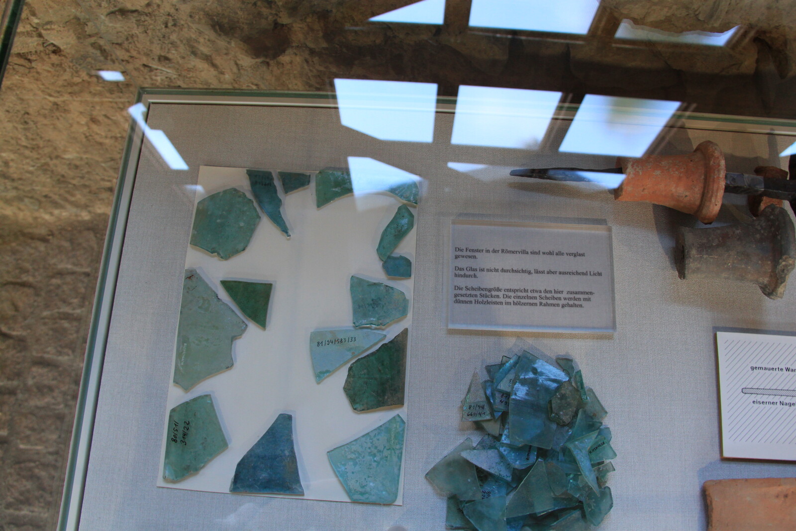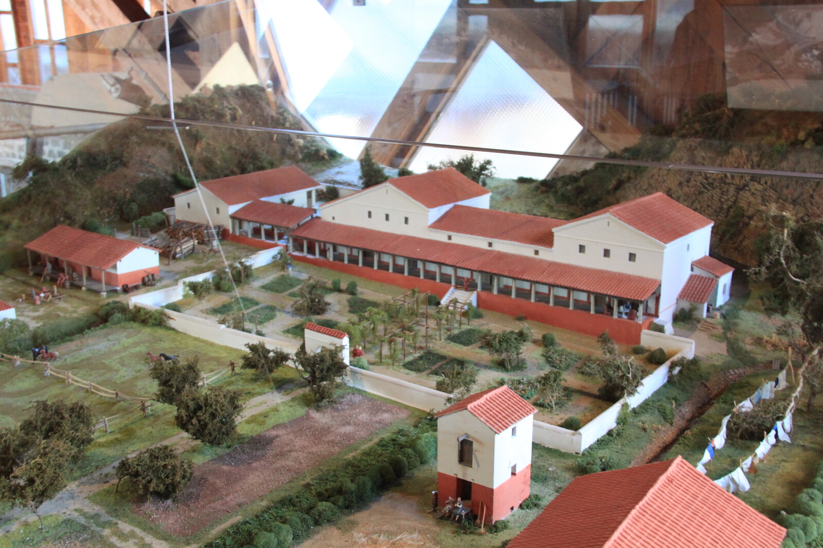The museum also houses a lot of exhibits: finds from the site, reconstructions, and similar items from other sites. There are explanations of the building material and building techniques used, and displays of everyday items for personal hygiene, jewelry, and pottery.
