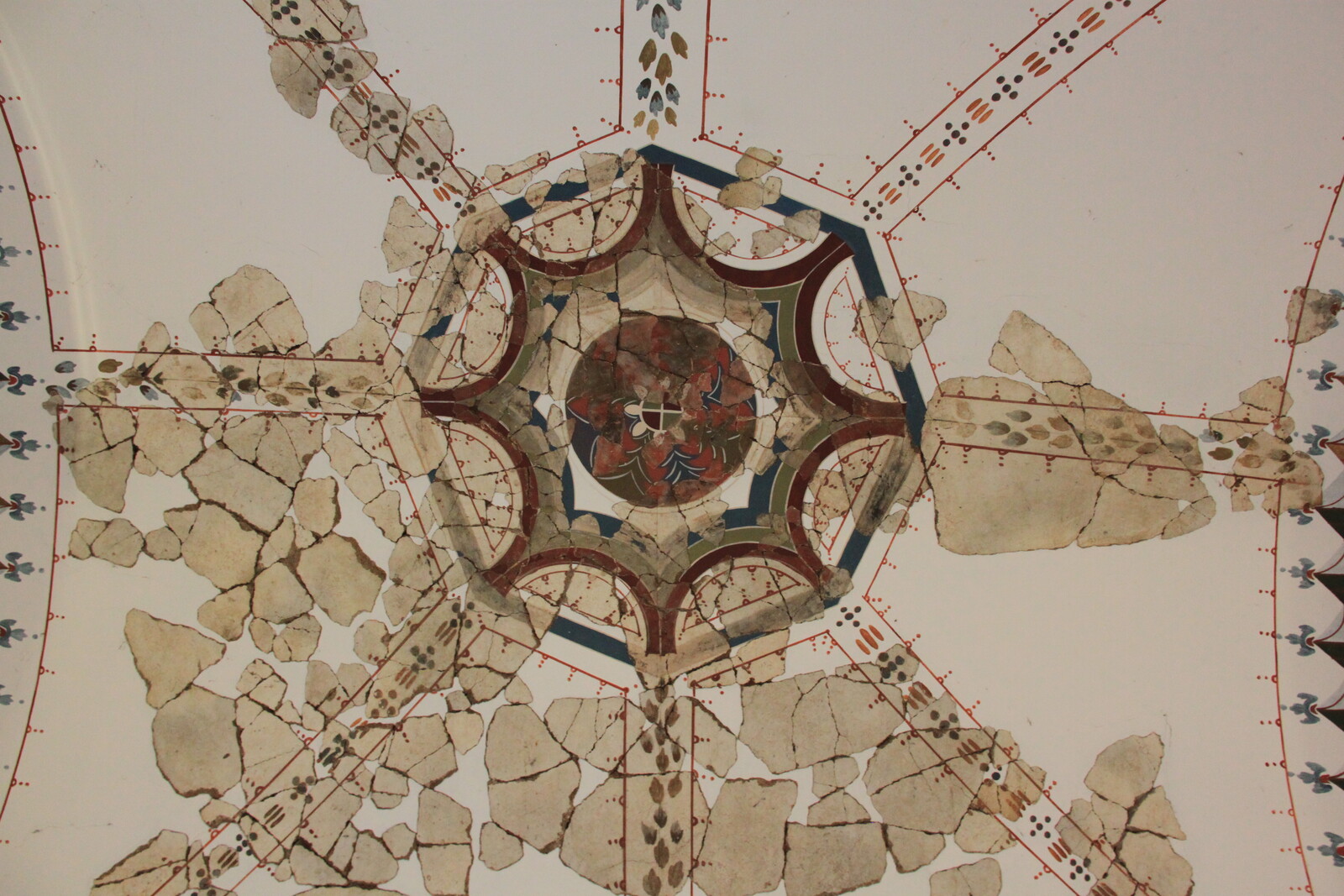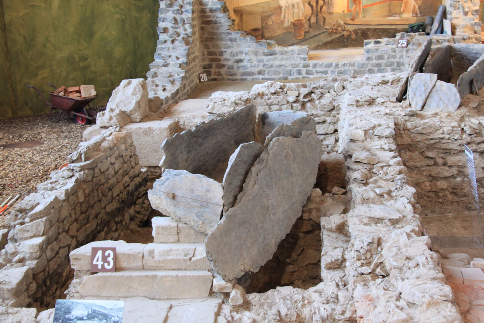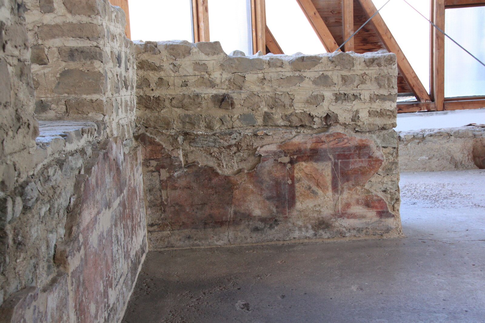 The building dates to around the end of the 1st century A.D. and was equipped with all the ammenities of an upper-class Roman estate. A large porticus overlooking the most picturesque possible view of the surrounding valley, underfloor heating, frescoes.