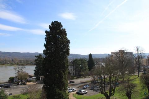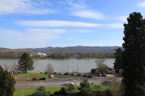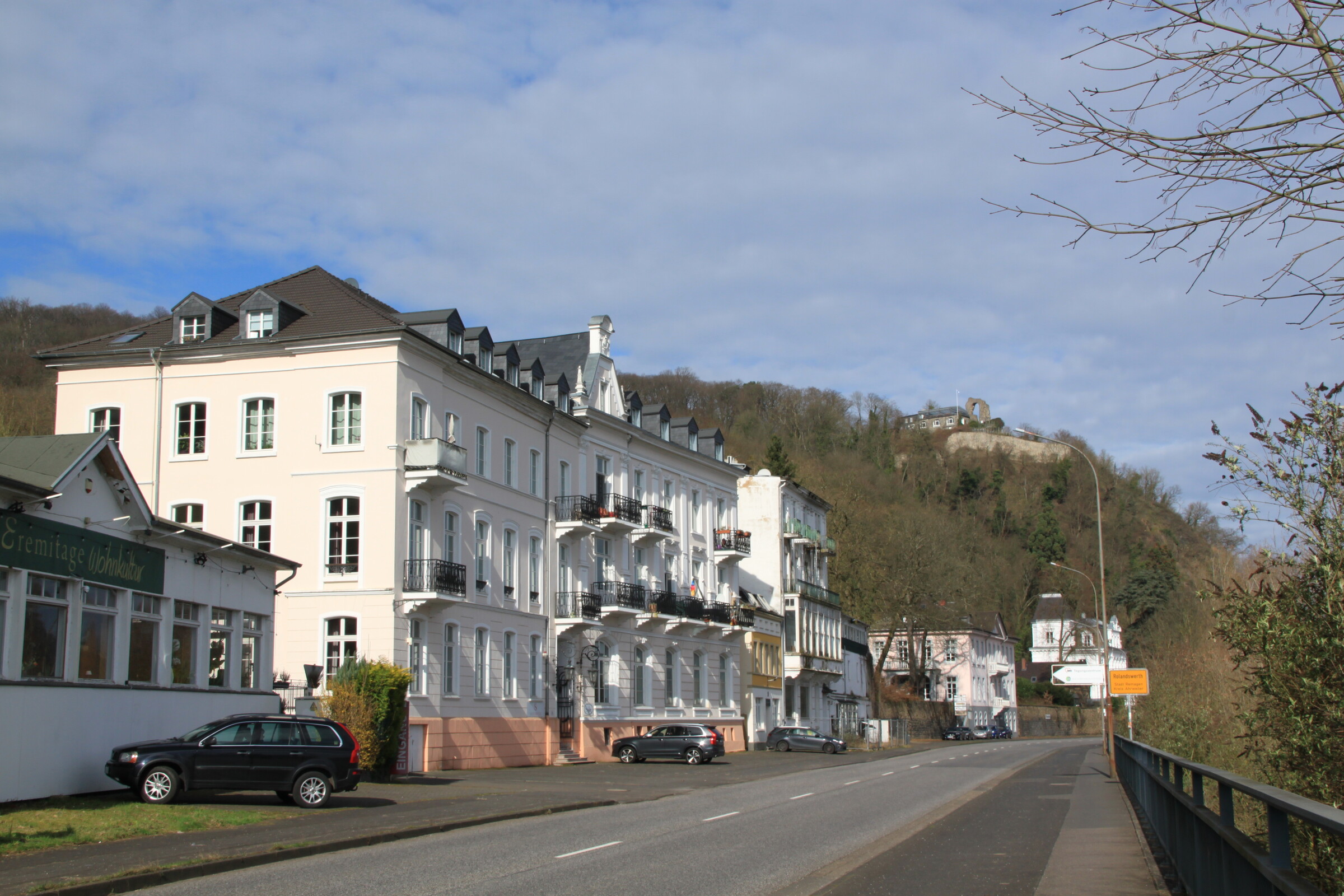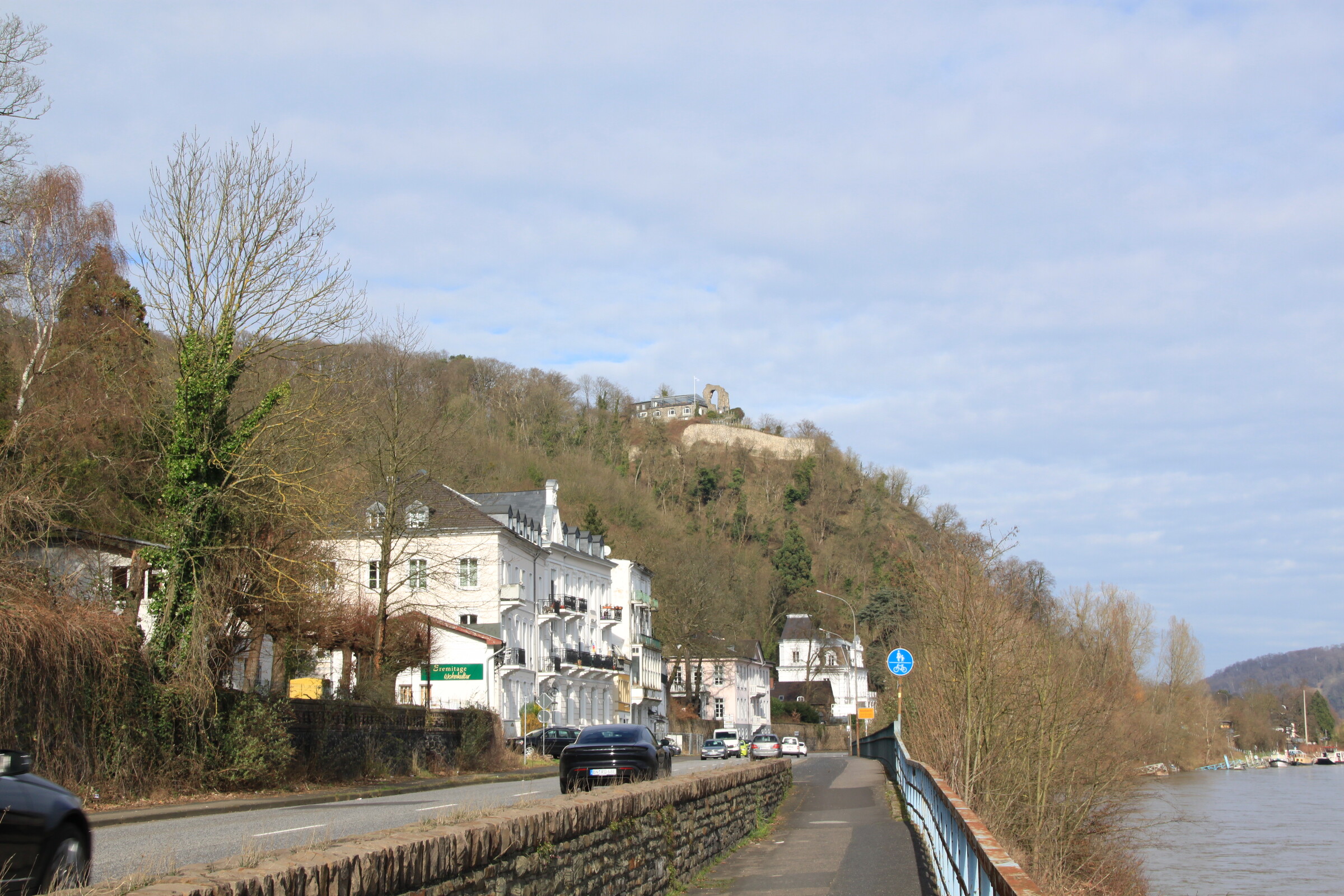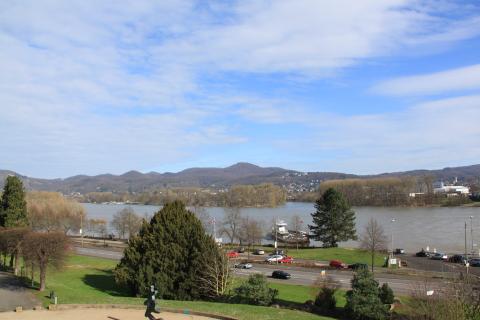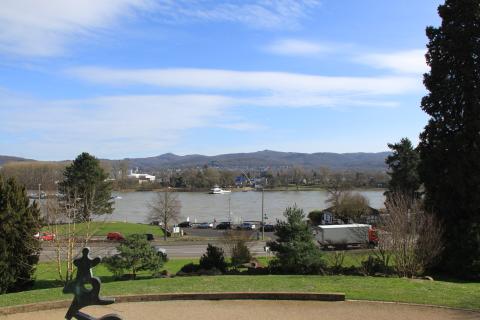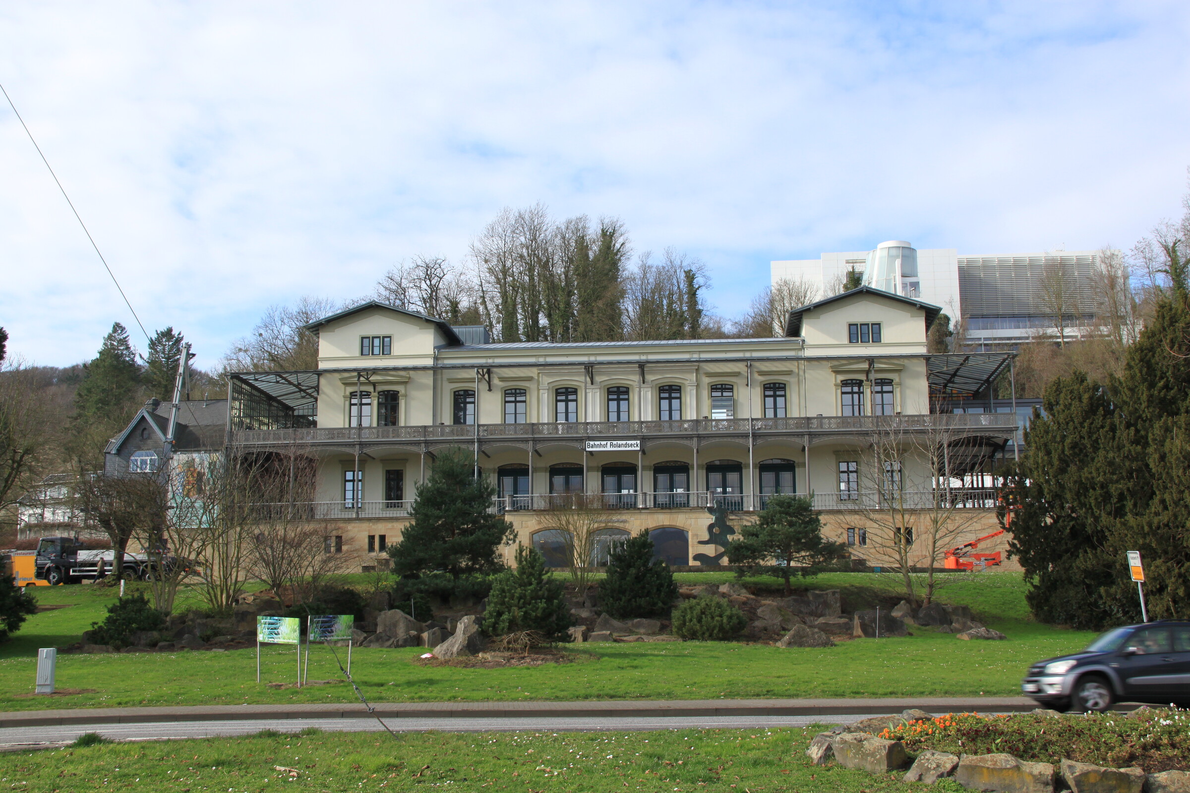 It offers a good view of the Siebengebirge mountain range on the other side of the river. A ferry goes back and forth between Rolandseck and Königswinter.