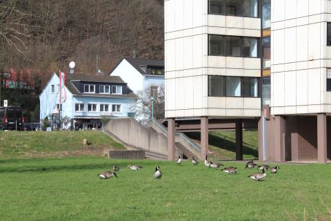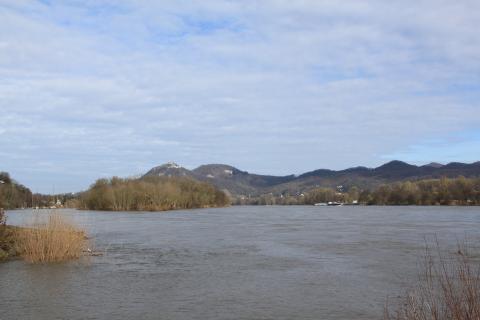 The island of Nonnenwerth lies just off the B9 north of Rolandseck. During the winter the Rhine often rises high, so it's common for the tip of the island to lie underwater.