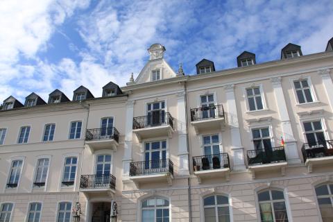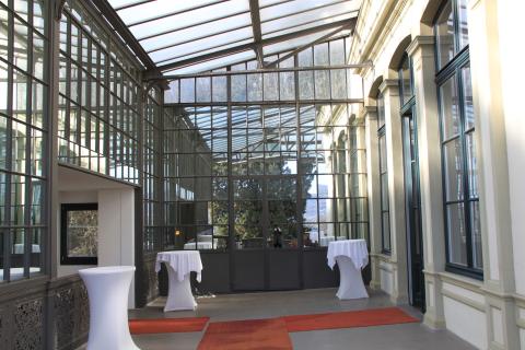The upper floor hosts a restaurant today, the ground floor is used for some art gallery stuff.