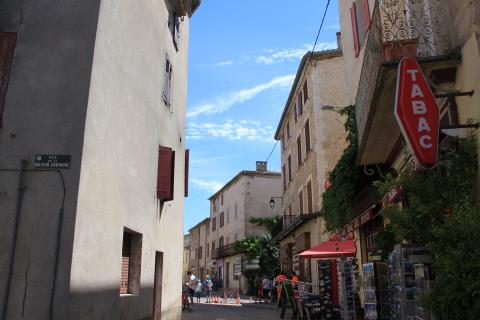 Architectonically, it's a typical small town of the region: narrow medieval alleys, blue window shutters, the dingy look of many a house balanced out by charming little details.