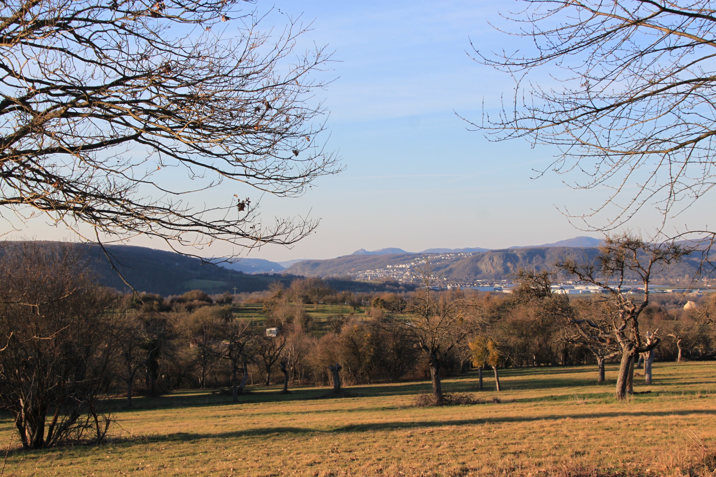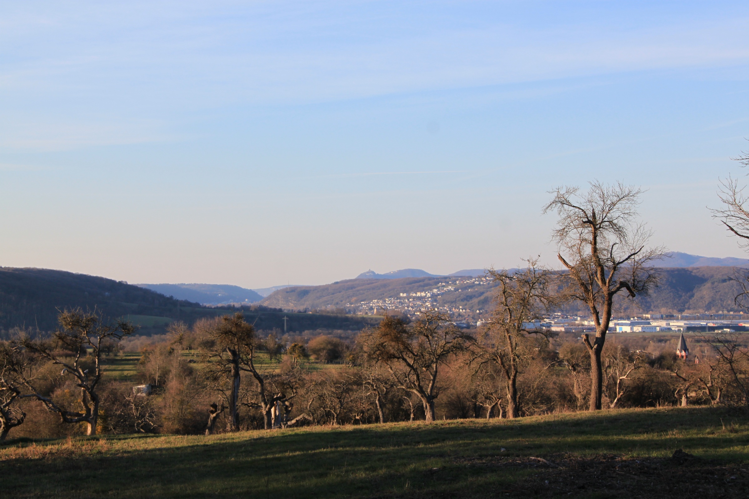 In the distance, the Drachenfels; a bit closer and to the right, the Erpeler Ley.