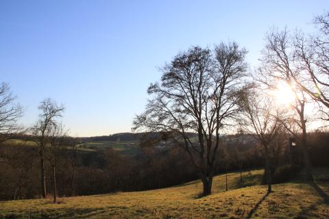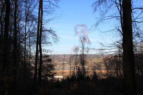 Before spring drapes the forest in foliage, the eye has an easy time finding the sun in the sky and the Rhine valley downhill.