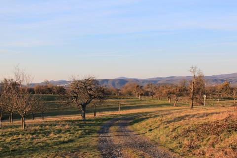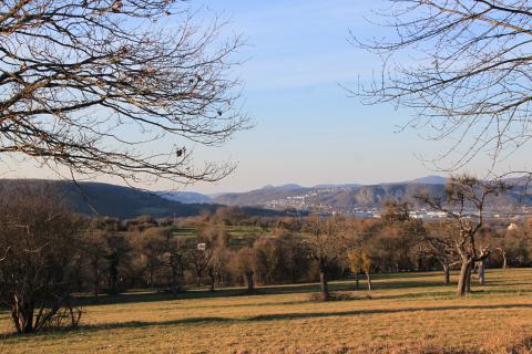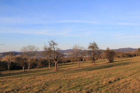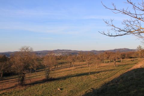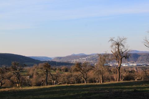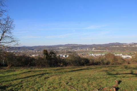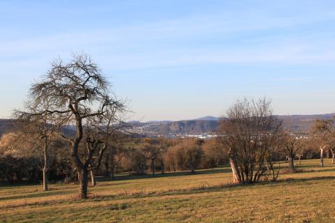 The meadow grants a splendid view of the mountains framing the Rhine's meanders.