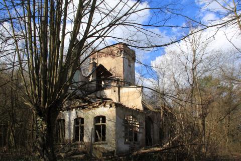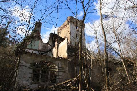 There's a certain beautiful irony to it that this imitation of a castle, in being abandoned and reclaimed by the forest, comes to authentically resemble its mediæval inspirations.
